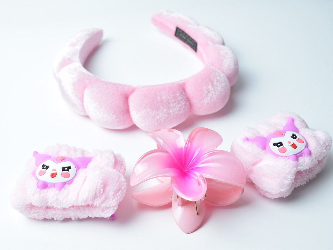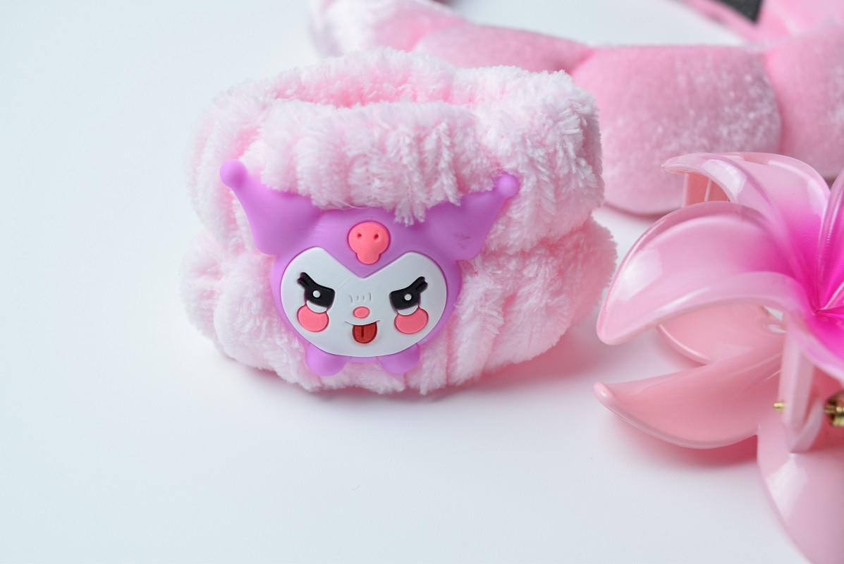 Ободок для умывания с нарукавниками и крабиком для волос «Kuromi»