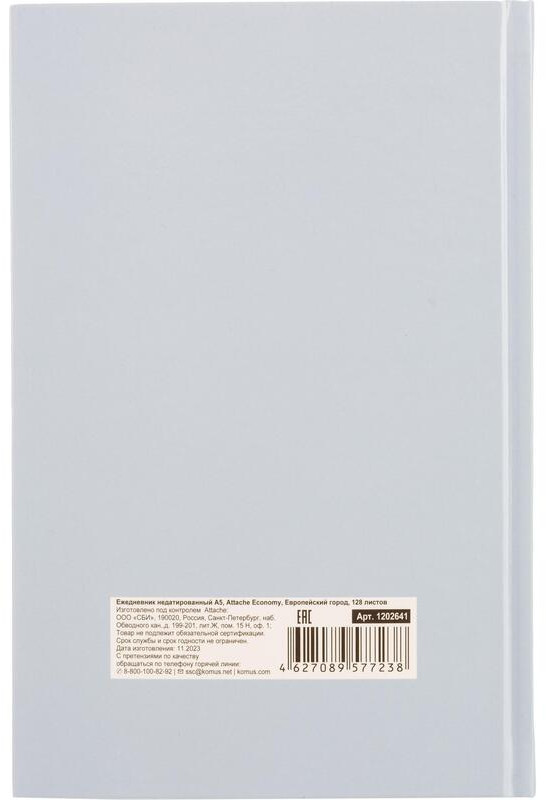 💳 Оплатить за товар можно при получении 🇰🇿 Есть бесплатная доставка по Казахстану от 1 дня 🎁 Копите бонусы с каждой покупки Ежедневник недатированный Attache Economy. Обложка из цветного твердого картона с глянцевой ламинацией. Стиль обложки эмоциональный, яркий. Прошитый тип крепления надежно держит блок. Блок: 128 листов (256 страниц), бумага белый офсет плотностью 55— 55-65 г/кв.м., белизной 70%, печать в блоке в 1 краску. Содержит информационно-справочный блок — личные данные, телефонные коды России, международные телефонные коды, европейские аэропорты, телефонные коды СНГ и Балтии, номера телефонов в Москве, автомобильные коды регионов России, российские государственные праздники, размеры одежды, штриховой код, единицы измерения, список стран мира с указанием столицы, государственного языка, национальной валюты, внутренний календарь на 2023 — 2026 гг. На один день недели приходится одна страница, временной интервал — 30 минут с 8:00 до 21:00 свободные строки. Нет петли для ручки. Удобен для записи переговоров, встреч. |