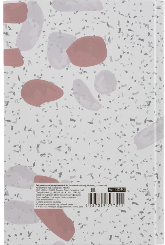 💳 Оплатить за товар можно при получении 🇰🇿 Есть бесплатная доставка по Казахстану от 1 дня 🎁 Копите бонусы с каждой покупки Ежедневник недатированный Attache Economy. Обложка из цветного твёрдого картона с глянцевой ламинацией. Стиль обложки универсальный, офисный. Прошитый тип крепления надёжно держит блок. Блок: 128 листов (256 страниц), бумага белый офсет плотностью 55-65 г/кв.м., белизна 70%, печать в блоке в 1 краску. Содержит информационно-справочный блок — личные данные, телефонные коды России, международные телефонные коды, европейские аэропорты, телефонные коды СНГ и Балтии, номера телефонов в Москве, автомобильные коды регионов России, российские государственные праздники, размеры одежды, штриховой код, единицы измерения, список стран мира с указанием столицы, государственного языка, национальной валюты, внутренний календарь на 2023 — 2026 гг. На один день недели приходится одна страница, временной интервал — 30 минут с 8:00 до 21:00 свободные строки. Нет петли для ручки. Удобен для записи переговоров, встреч. |