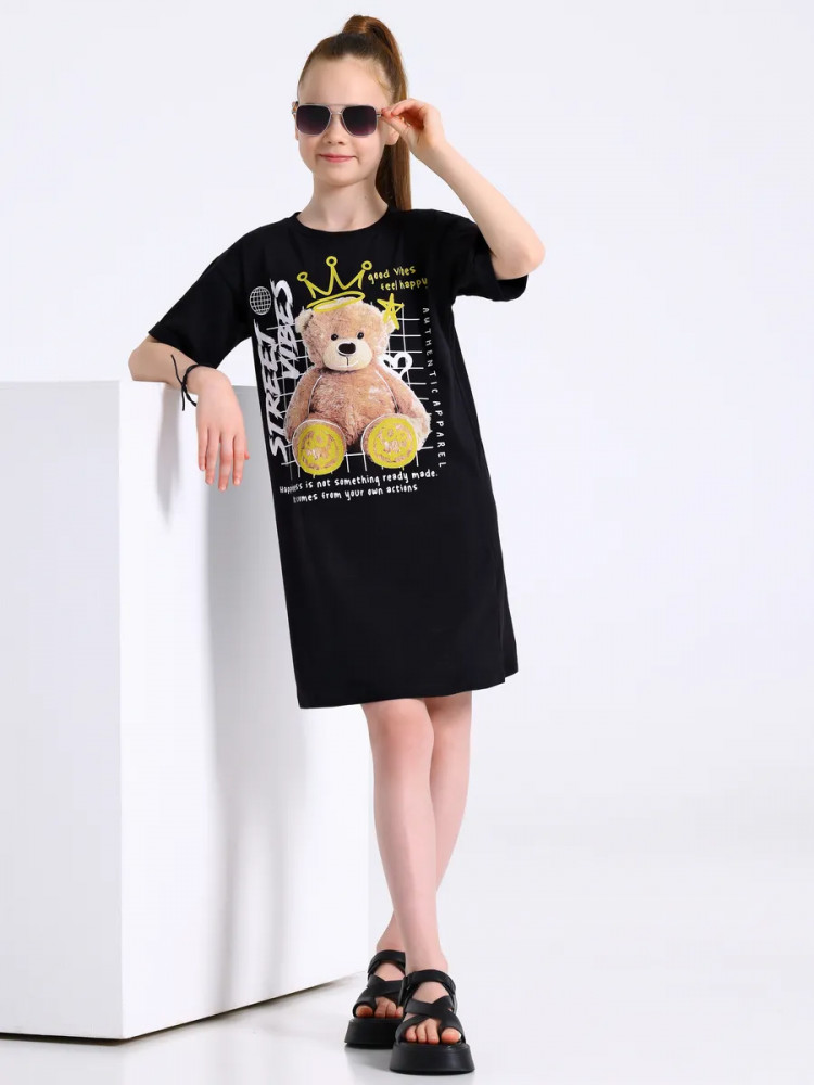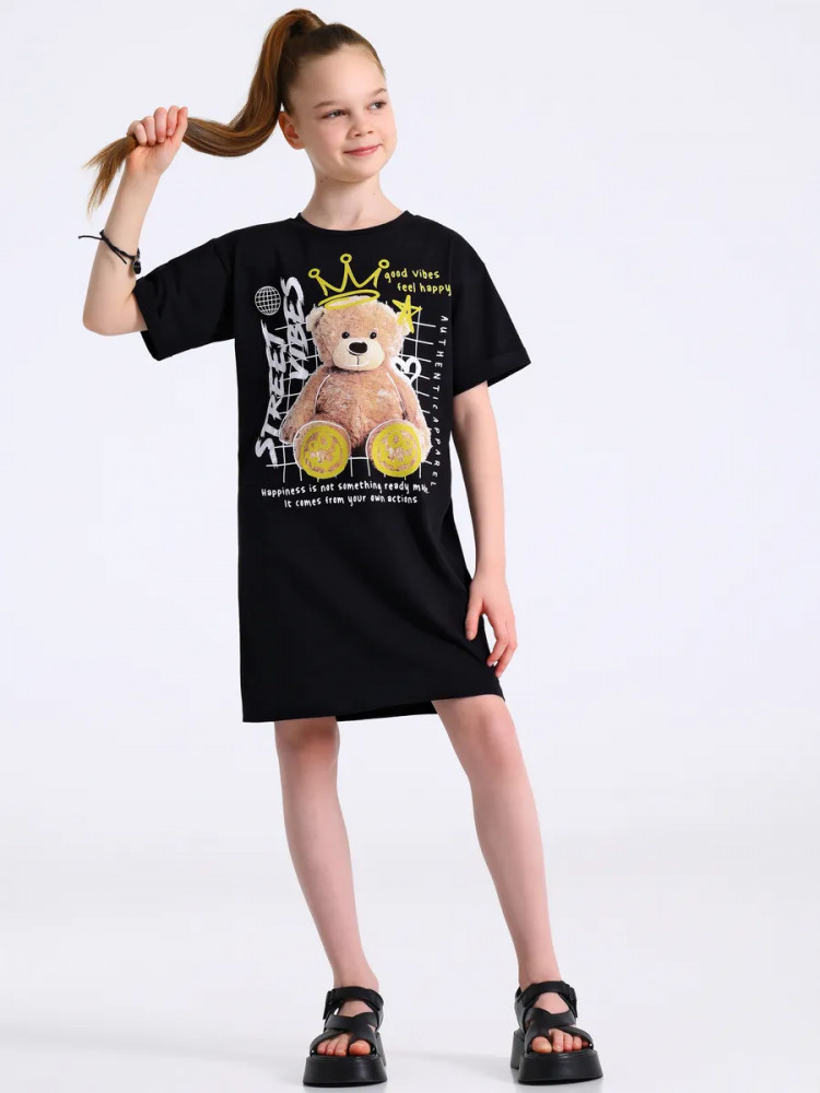 Апрель Платье-футболка для девочек «Мишка в короне»