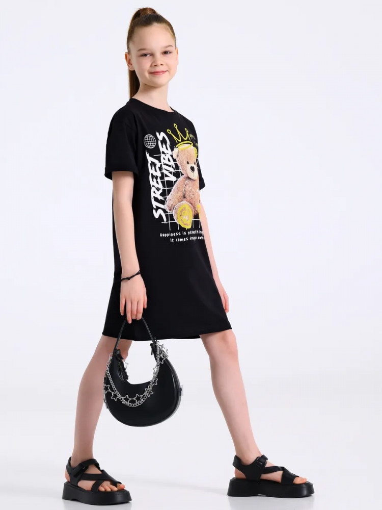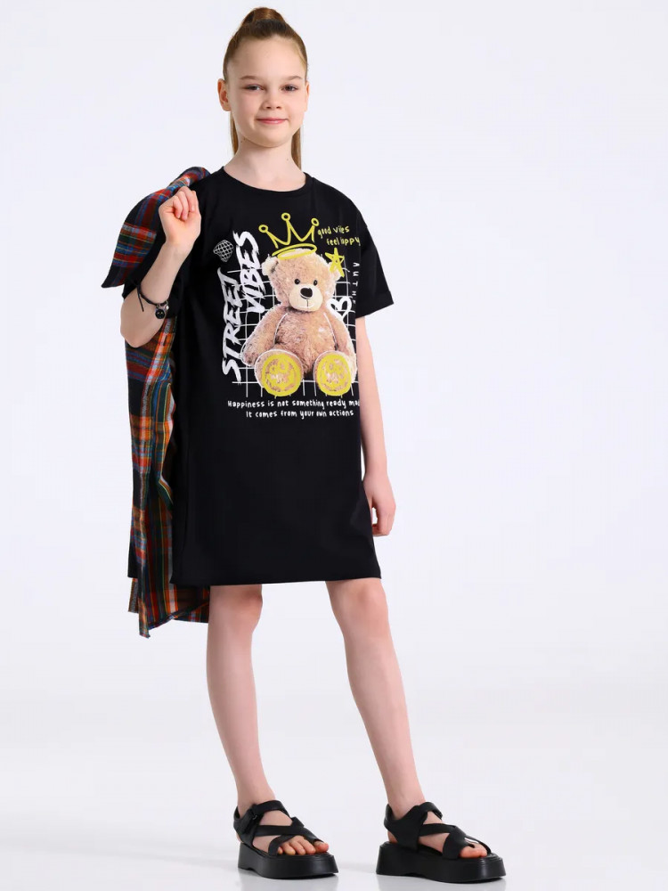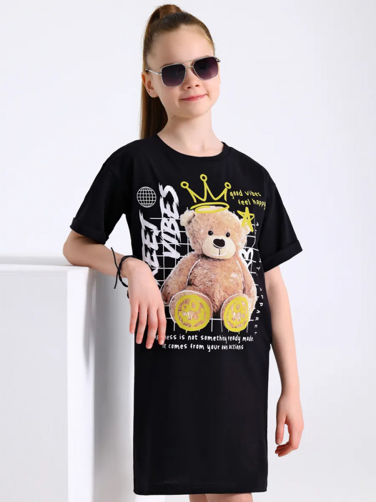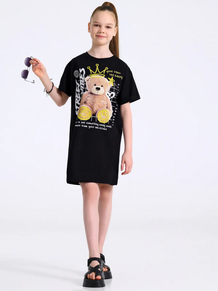 Апрель Платье-футболка для девочек «Мишка в короне»