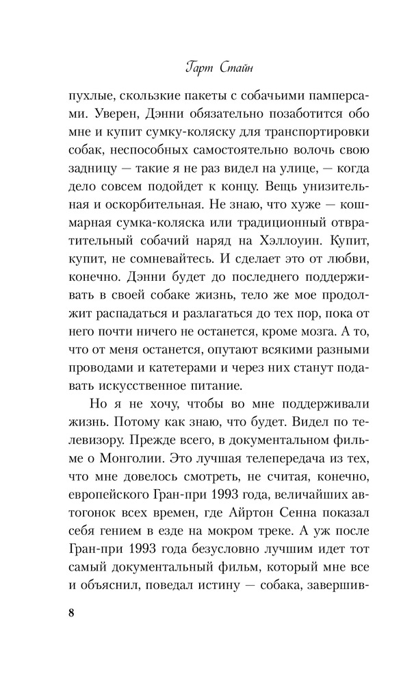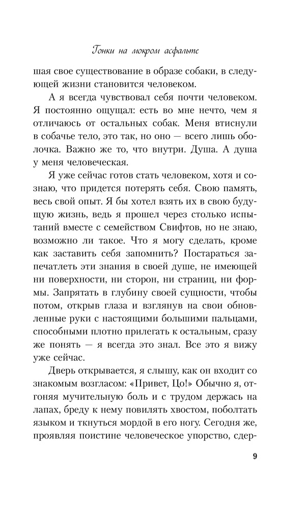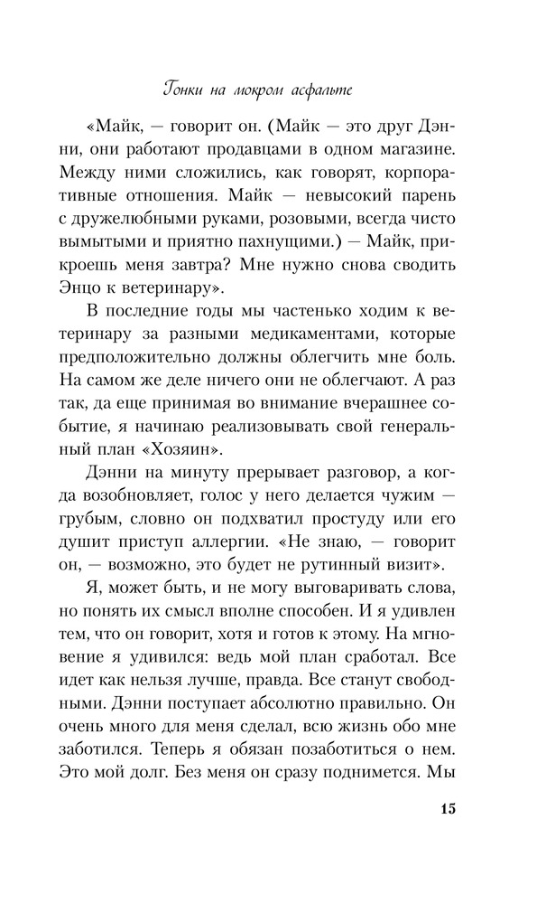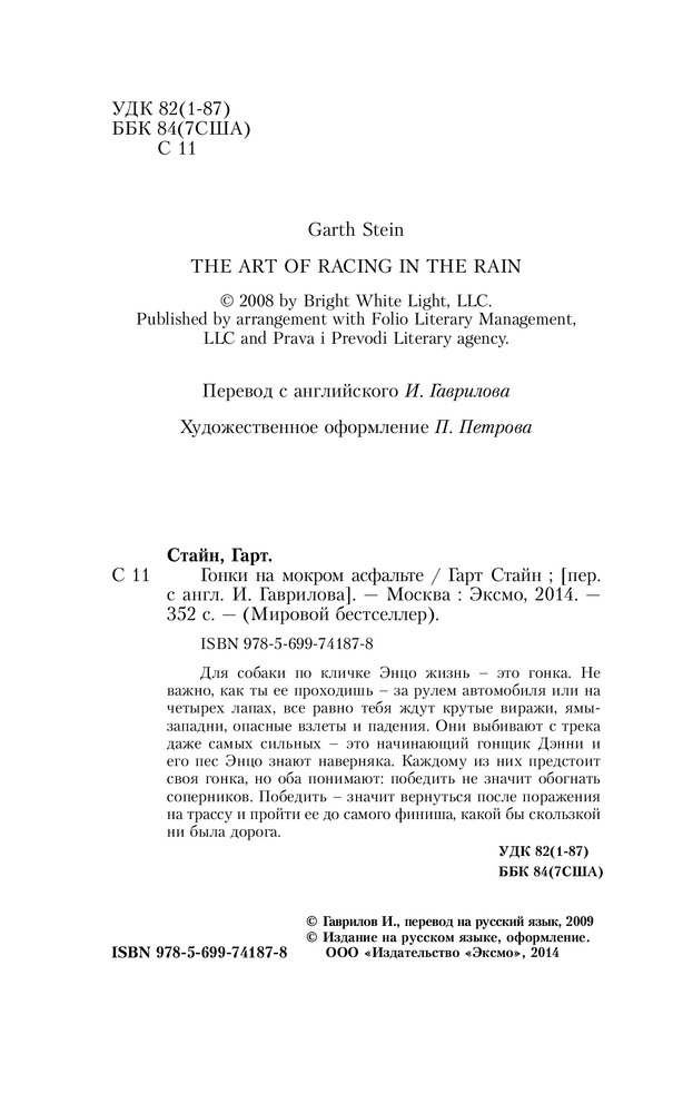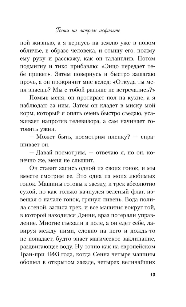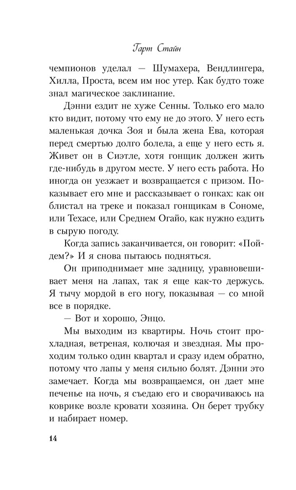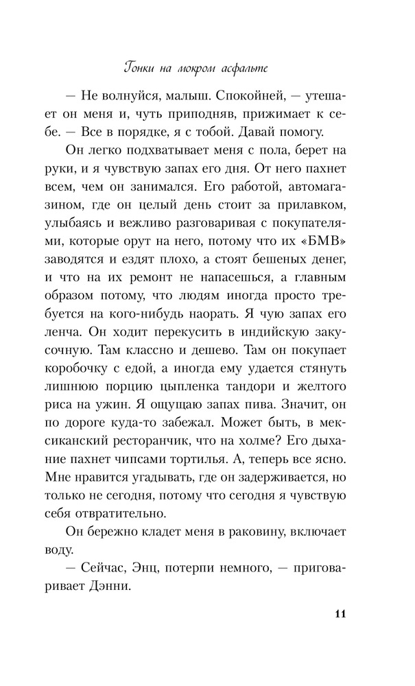 Гонки на мокром асфальтеВ данный момент этот товар отсутствует в продаже. Возможно, у нас найдется аналогичный или похожий товар здесь. Серия: Мировой бестселлер Для собаки по кличке Энцо жизнь - это гонка. Не важно, как ты ее проходишь - за рулем автомобиля или на четырех лапах, все равно тебя ждут крутые виражи, ямы-западни, опасные взлеты и падения. Они выбивают с трека даже самых сильных - это начинающий гонщик Дэнни и его пес Энцо знают наверняка. Каждому из них предстоит своя гонка, но оба понимают: победить не значит обогнать соперников. Победить - значит вернуться после поражения на трассу и пройти ее до самого финиша, какой бы скользкой ни была дорога. |