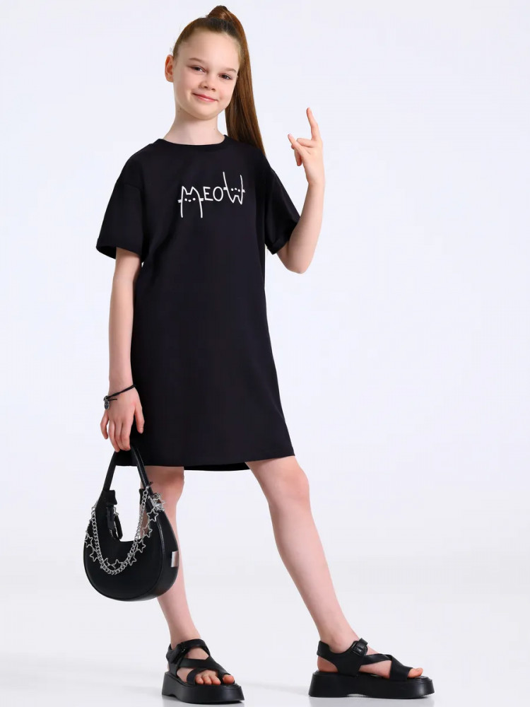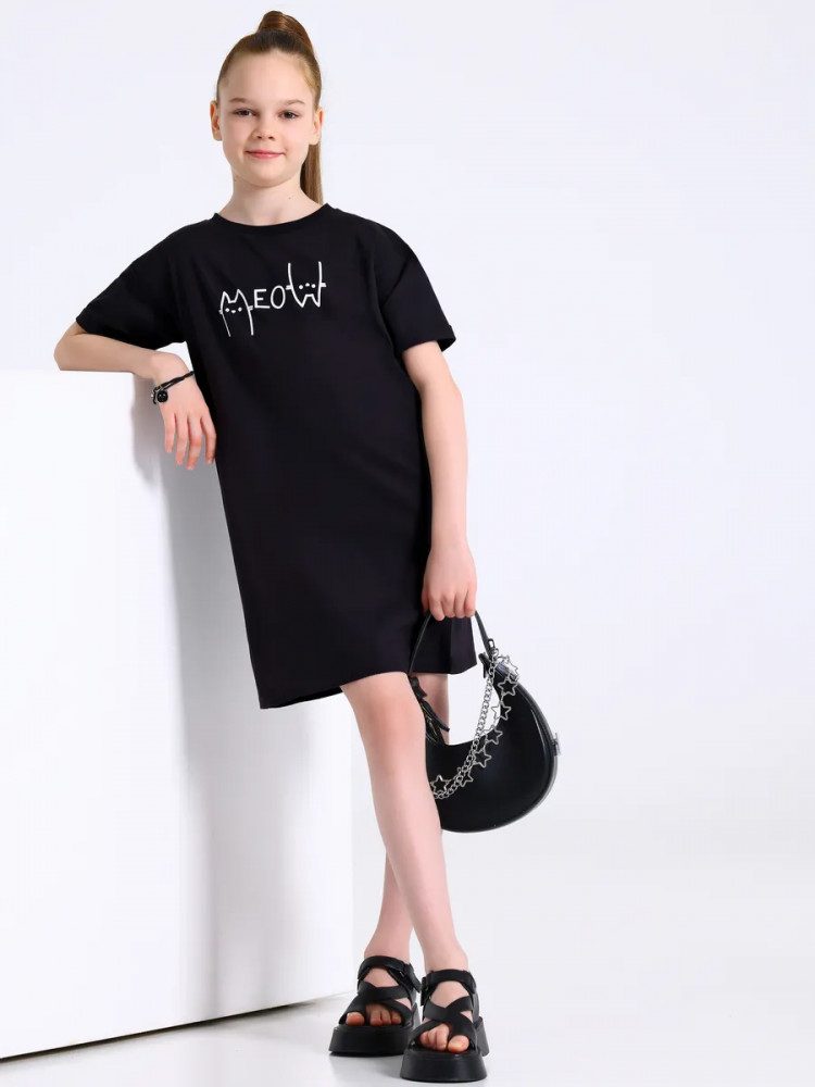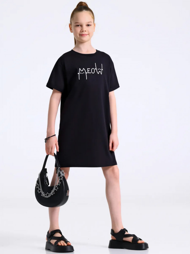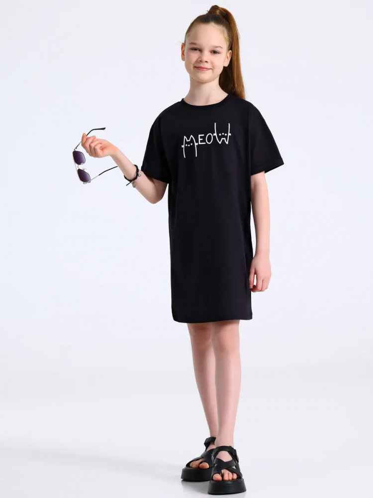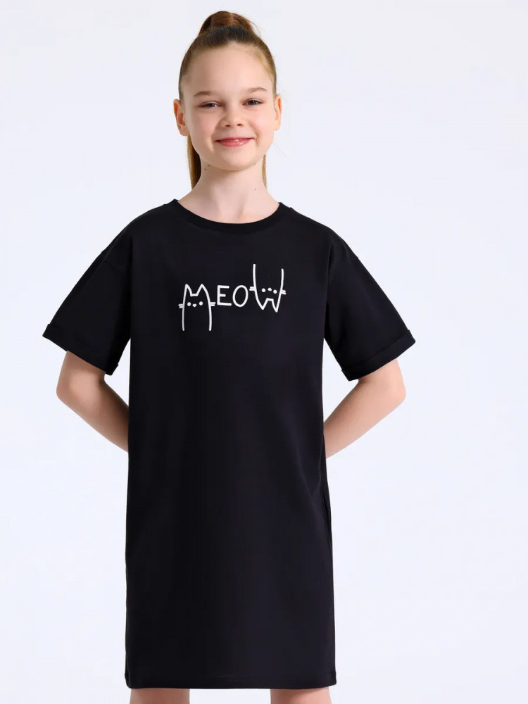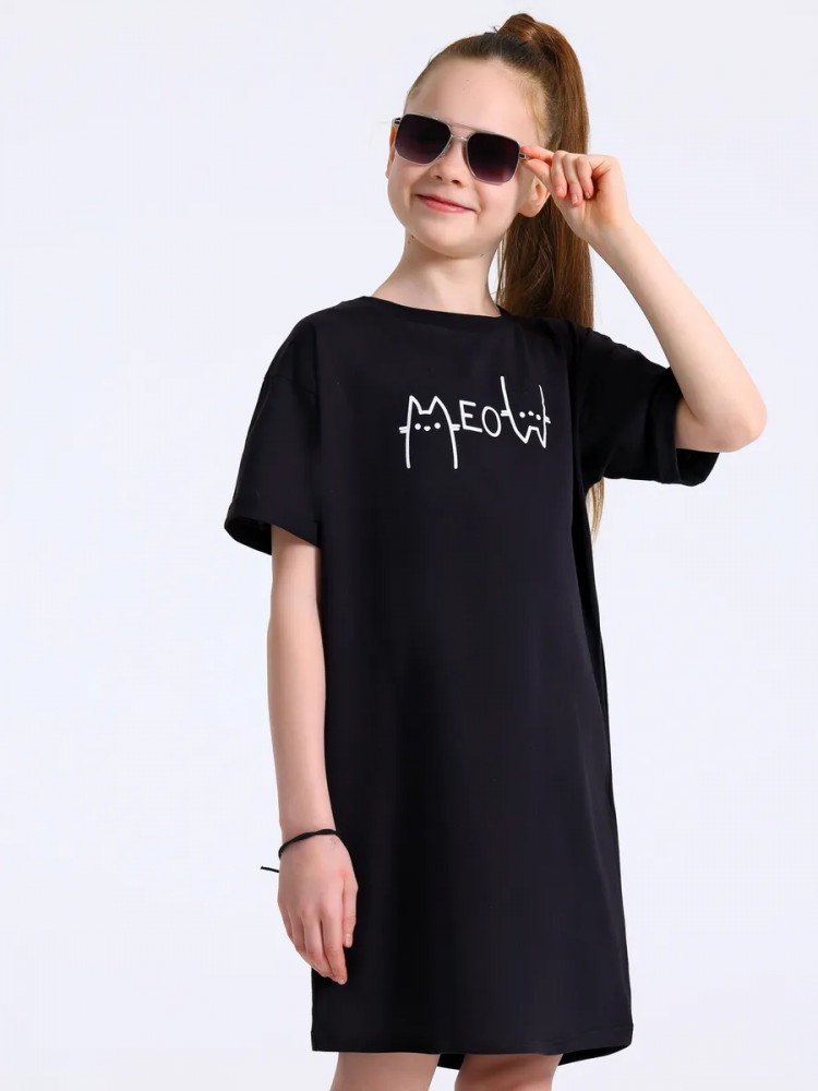 Апрель Платье-футболка для девочек «Коты мяукают»