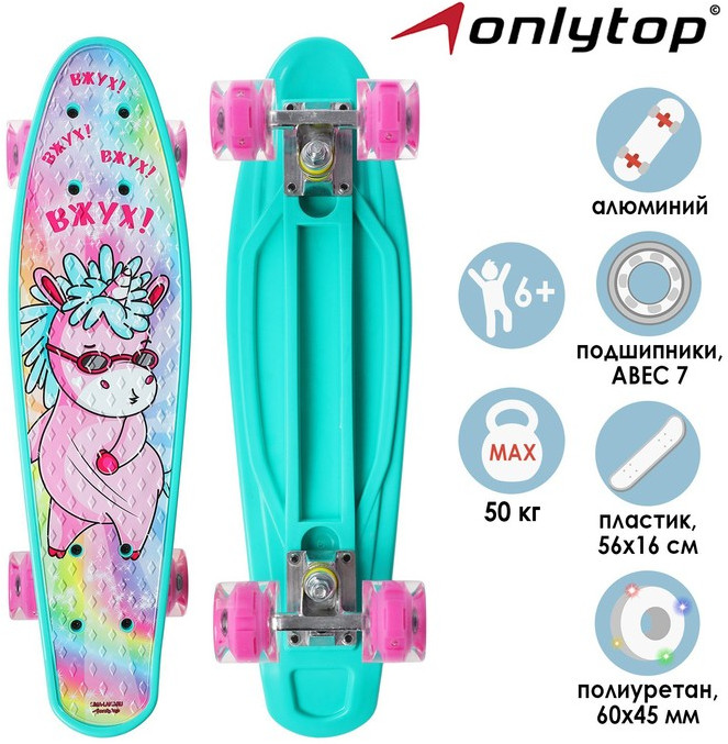 Onlytop Пенниборд со световыми колесами «Единорожка»В данный момент этот товар отсутствует в продаже. Возможно, у нас найдется аналогичный или похожий товар здесь. Компактный и манёвренный скейтборд — отличный выбор для юных начинающих скейтбордистов. С ним ребёнок научится держать равновесие и разовьёт мышцы ног. Дека с ребристой поверхностью обеспечивает хорошее сцепление с подошвой обуви и не позволяет ногам скользить по доске. Алюминиевая подвеска. |