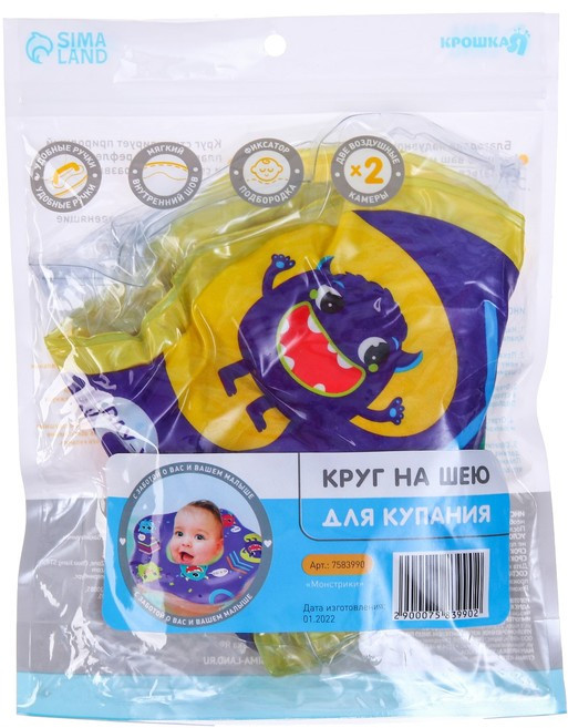 Крошка Я Круг для плавания новорожденных на шею «Монстрики»В данный момент этот товар отсутствует в продаже. Возможно, у нас найдется аналогичный или похожий товар здесь. Круг для плавания новорождённых на шею с ручками — идеальный помощник для первых водных приключений вашего малыша. Надёжная конструкция: верхняя и нижняя воздушные камеры независимы и надуваются отдельно. Удобная фиксация: круг снабжён двусторонней липкой застёжкой, что позволяет регулировать плотность прилегания к телу малыша. Комфортное использование: надувной эластичный обод предупреждает давление на шею ребёнка, мягкая вставка для подбородка поддерживает головку над водой, а в местах соприкосновения с кожей круг обработан по технологии «внутреннего шва» (гладкий материал не натирает нежную кожу ребёнка). Безопасность: все использованные материалы гипоаллергенны и разрешены для производства детской продукции. |