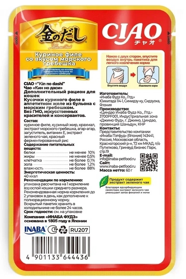 Inaba Корм влажный для кошек «Куриное филе со вкусом морского гребешка»
