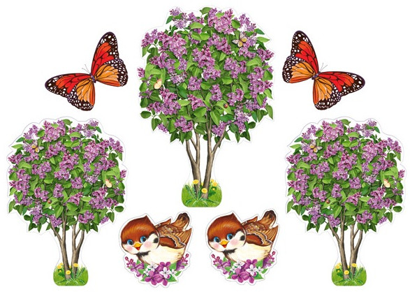 Набор вырубных плакатов для оформления интерьера со скотчем «Сиреневый сад»+94