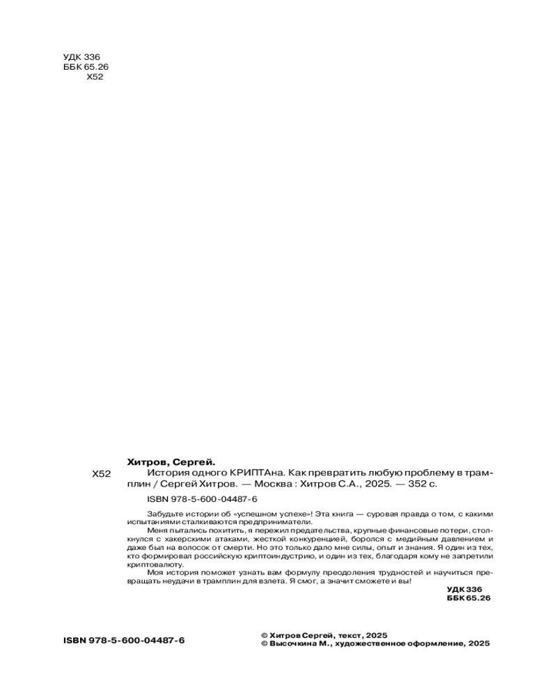 💳 Оплатить за товар можно при получении 🇰🇿 Есть бесплатная доставка по Казахстану от 1 дня 🎁 Копите бонусы с каждой покупки Серия: Бизнес. Как это работает в России Забудьте истории об «успешном успехе»! Эта книга — суровая правда о том, с какими испытаниями сталкиваются предприниматели. Меня пытались похитить, я пережил предательства, крупные финансовые потери, столкнулся с хакерскими атаками, жесткой конкуренцией, боролся с медийным давлением и даже был на волосок от смерти. Но это только дало мне силы, опыт и знания. Я один из тех, кто формировал российскую криптоиндустрию, и один из тех, благодаря кому не запретили криптовалюту. Моя история поможет узнать вам формулу преодоления трудностей и научиться превращать неудачи в трамплин для взлета. Я смог, а значит, сможете и вы! |