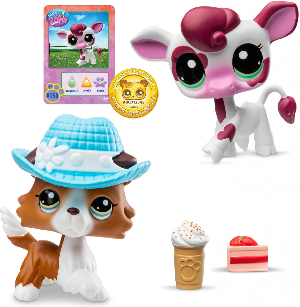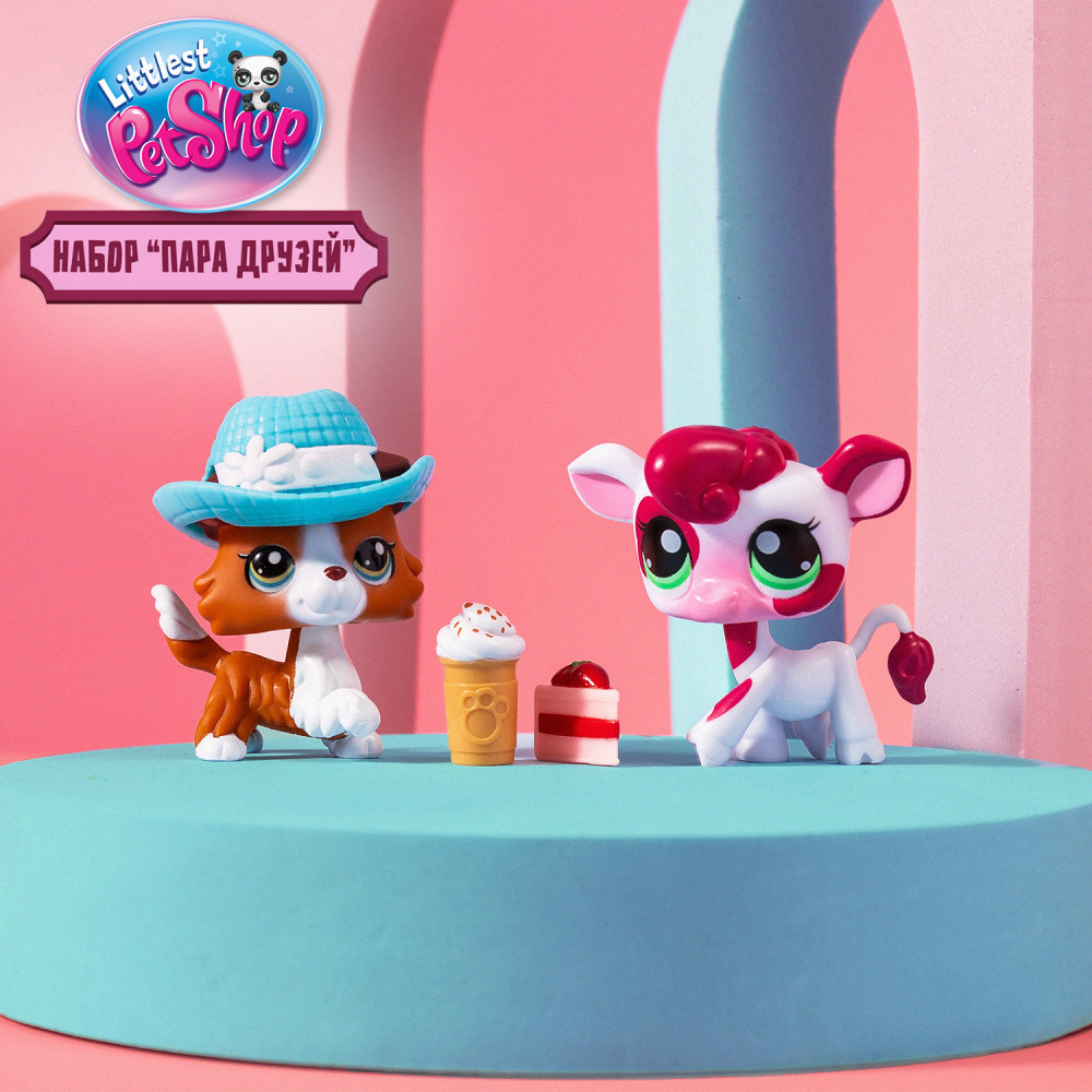 Главные герои набора «Пара друзей» — розовый телёнок и щенок колли, которые могут похвастаться новой для серии LPS характеристикой — они умеют качать головами! Комплект также включает в себя тематические аксессуары: стакан с каппучино, кусочек торта, шляпу. В набор также входит уникальная коллекционная карточка, где вы найдете интересную информацию о телёнке.