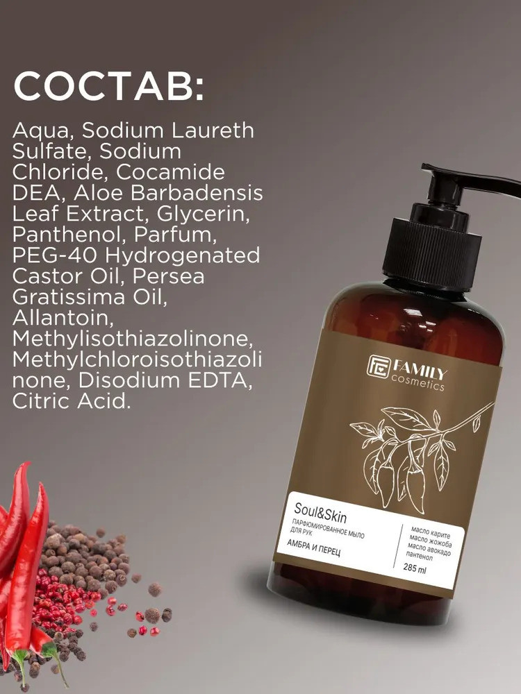 Family cosmetics Парфюмированное мыло для рук «Амбра и Перец»