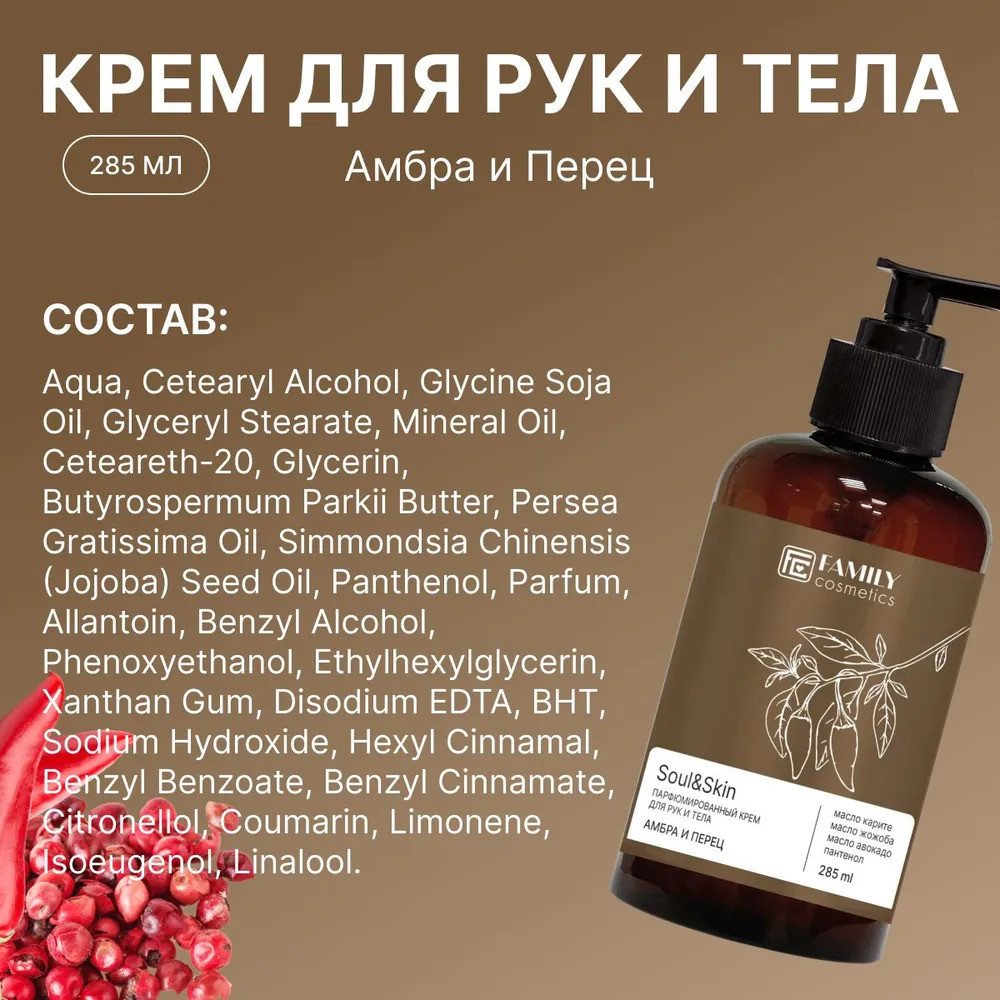 Family cosmetics Парфюмированный крем для рук и тела «Амбра и Перец»