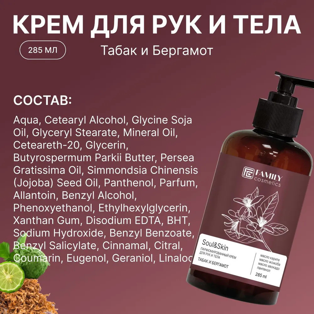 Family cosmetics Парфюмированный крем для рук и тела «Табак и Бергамот»