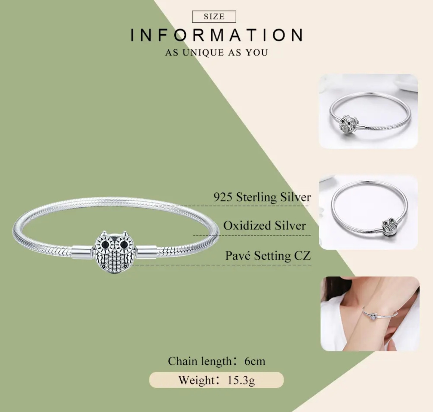 Браслет из серебра «Сова» | Bamoer