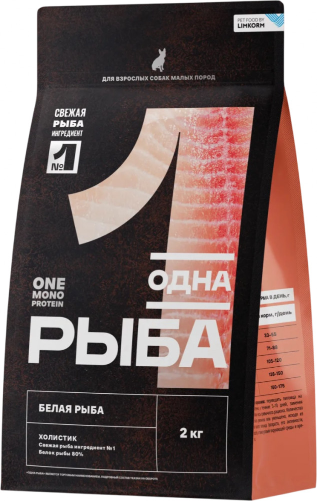 Одно мясо Корм сухой для взрослых собак малых пород с белой рыбой