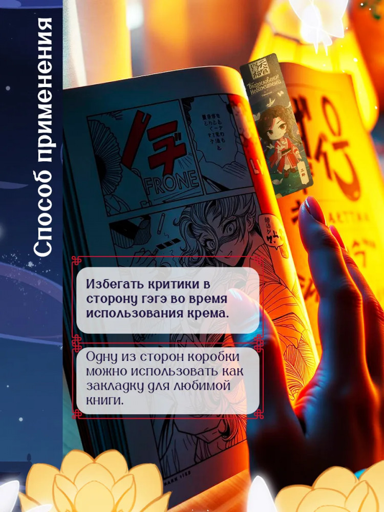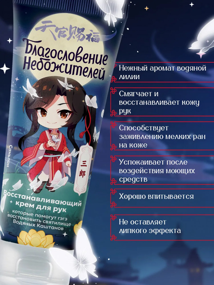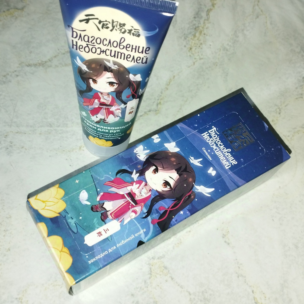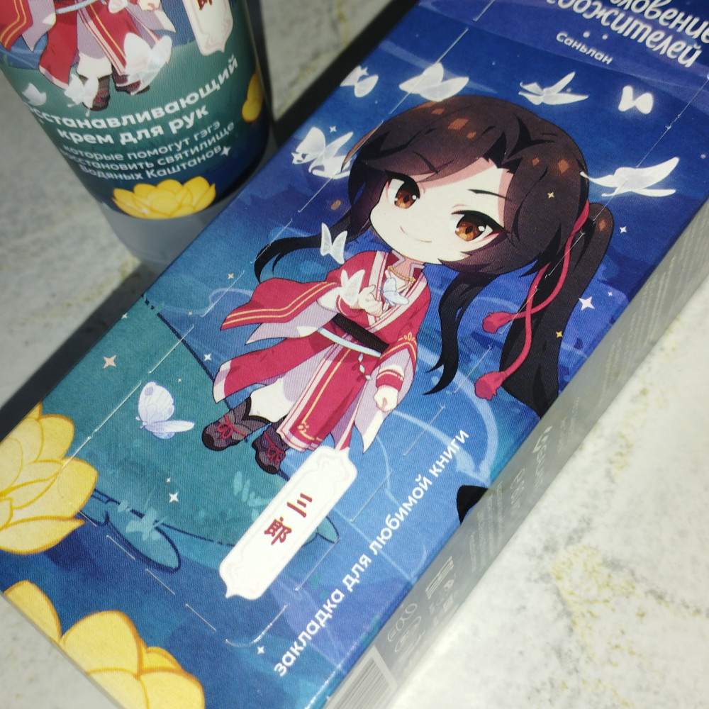 Крем пришел целым, запечатанным. Коробочка не помятая, можно сделать закладку для книг с маленьким чиби Хуа🥰. Пахнет шикарно🪷! О покупке не жалею! Привет всем фанатам "Благословения небожителей"!👋🏼