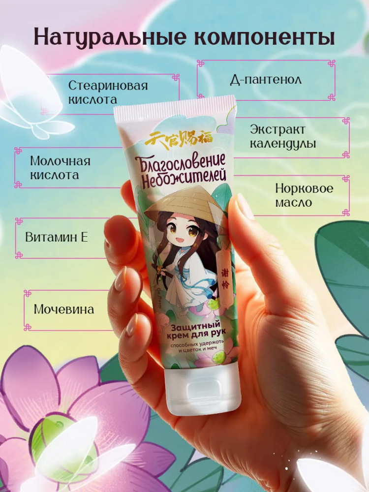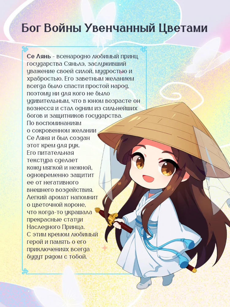 Крем пришел целым, запечатанным. Коробочка не помятая, можно сделать закладку для книг с маленьким чиби Хуа🥰. Пахнет шикарно🪷! О покупке не жалею! Привет всем фанатам "Благословения небожителей"!👋🏼