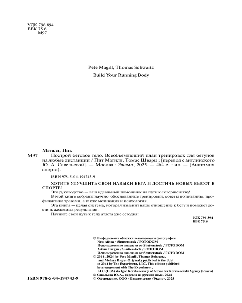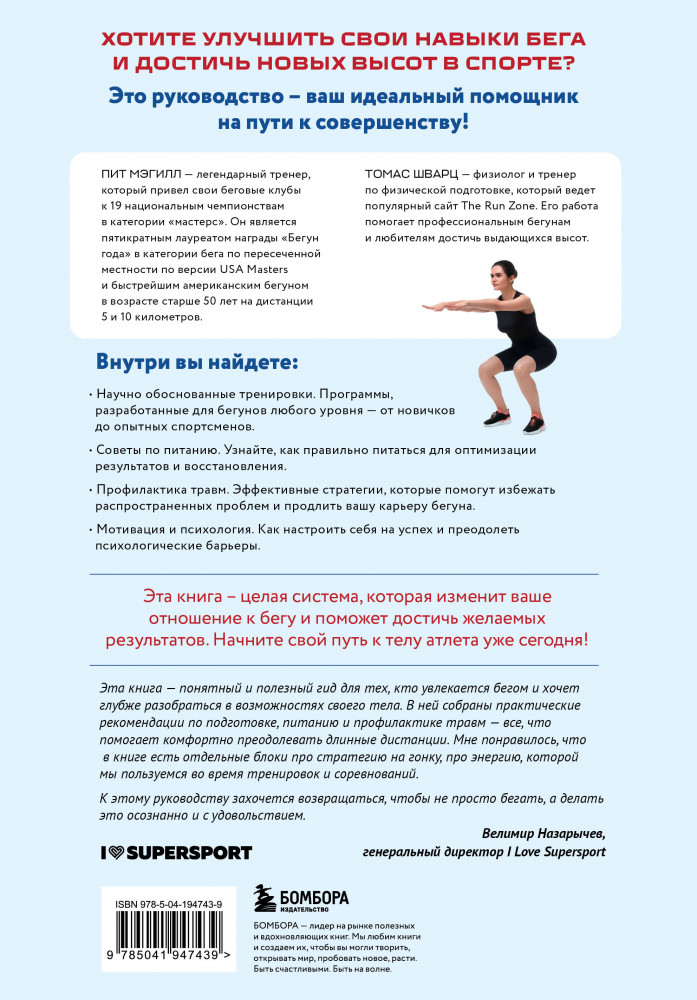 💳 Оплатить за товар можно при получении 🇰🇿 Есть бесплатная доставка по Казахстану от 1 дня 🎁 Копите бонусы с каждой покупки Серия: Анатомия спорта Хотите улучшить свои навыки бега и достичь новых высот в спорте? Это руководство — ваш идеальный помощник на пути к совершенству! Пит Мэгилл — легендарный тренер, который привел свои беговые клубы к 19 национальным чемпионствам в категории «мастерс». Он является пятикратным лауреатом награды «бегун года» в категории бега по пересеченной местности по версии usa masters и быстрейшим американским бегуном в возрасте старше 50 лет на дистанции 5 и 10 километров. Томас Шварц — физиолог и тренер по физической подготовке, который ведет популярный сайт the run zone. Его работа помогает профессиональным бегунам и любителям достичь выдающихся высот. Эта книга — целая система, которая изменит ваше отношение к бегу и поможет достичь желаемых результатов. Начните свой путь к телу атлета уже сегодня! |