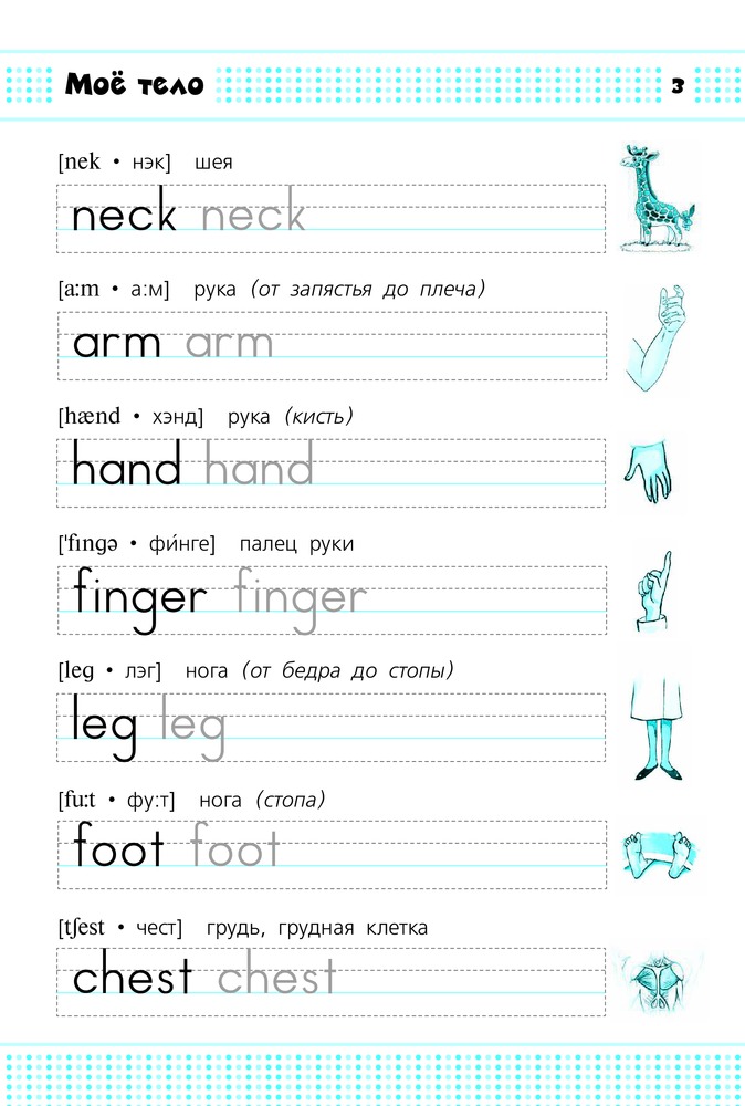 Все слова снабжены как английской, так и русской транскрипцией - чтобы родители могли учить английский язык вместе с ребёнком - и подробной инструкцией по проведению занятий. |