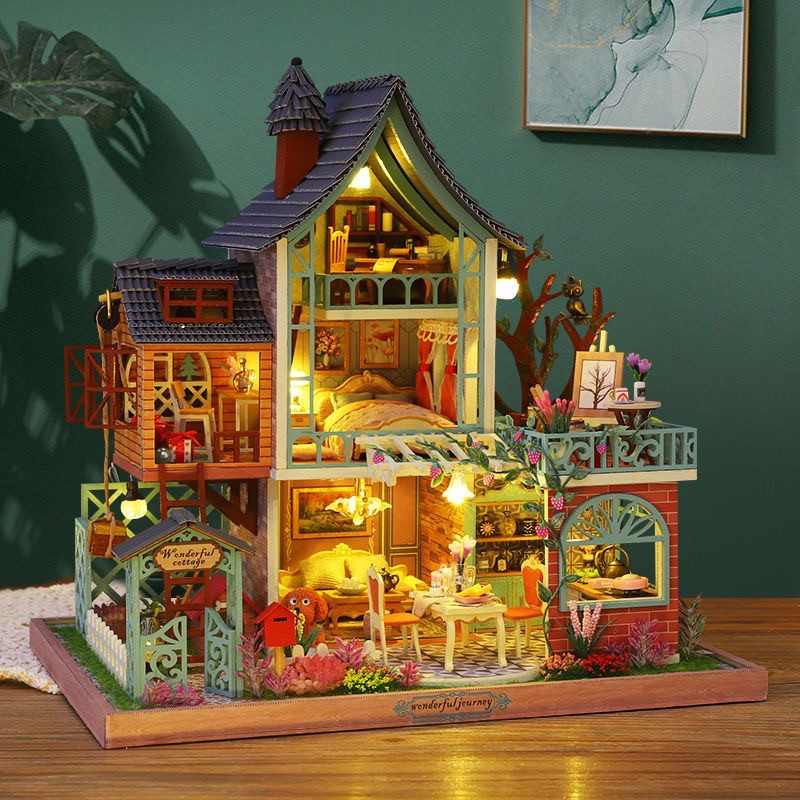 Румбокс «Jungle Resort»В данный момент этот товар отсутствует в продаже. Возможно, у нас найдется аналогичный или похожий товар здесь. Румбокс «Jungle Resort» — это миниатюрный двухэтажный коттедж с уютным интерьером, садом, верандой и творческой зоной. В комплект входят мебель, светильники, элементы декора, комнатные растения, посуда, книги, картины, мольберт и даже крошечный почтовый ящик. Все детали тщательно проработаны и создают ощущение настоящего дома в миниатюре. Встроенное тёплое освещение добавляет атмосферы уюта и волшебства. Конструкция собирается вручную, что делает процесс особенно увлекательным и медитативным. Румбокс выполнен из дерева, бумаги, пластика и текстиля, идеально подойдёт для подарка, украшения интерьера или творческого досуга. На подставке — надпись wonderful journey, которая подчёркивает сказочный характер композиции. |