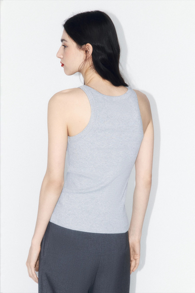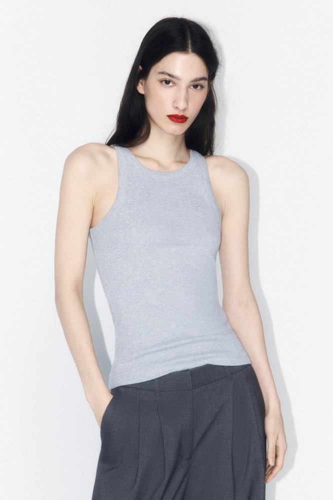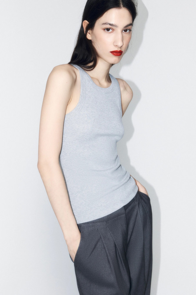 Однотонная майка в рубчик в меланжевом оттенке. Основа основ и мастхэв любого гардероба: базовая майка на широких бретельках на любой случай жизни. Универсальная и суперудобная майка-топ в рубчик для занятий спортом, йогой, повседневных луков и просто отдыха дома. Сочетай ее с любым низом, надевай под пиджак и создавай расслабленные и стильные кэжуал-луки, в которых тебе будет максимально удобно. Носи эту майку отдельно или используй в качестве основы для трендовых многослойных луков. Облегающая майка в рубчик средней длины станет самой любимой вещью в твоем гардеробе и подойдет под любой образ и настроение.