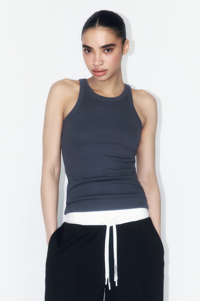 Базовая женская майка приталенного кроя из мягкой, эластичной и очень приятной к телу смесовой ткани на основе хлопка в мелкий рубчик. Широкие нерегулируемые бретели. Высокий круглый вырез горловины и закрытая спина. Широкая окантовка горловины и пройм обеспечивает комфортную посадку. Однотонная майка в рубчик представлена в разнообразных расцветках и станет основой любого гардероба. Это универсальный и удобный топ, подходящий для занятий спортом, йоги, повседневной носки и отдыха дома. Сочетай её с любым низом, носи под пиджак или кардиган, создавая расслабленные и стильные кэжуал-образы. Облегающая майка средней длины отлично подходит как для самостоятельной носки, так и для модных многослойных луков. Эта майка станет любимой вещью в твоём гардеробе и подойдёт под любое настроение и случай.