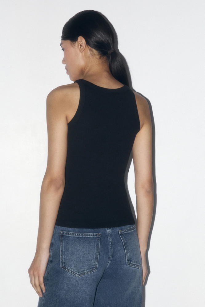 Базовая женская майка приталенного кроя выполнена из мягкой, эластичной и приятной к телу смесовой ткани на основе хлопка в мелкий рубчик. Майка имеет широкие нерегулируемые бретели, высокий круглый вырез горловины и закрытую спину. Широкая окантовка горловины и пройм придает изделию завершенный вид. Однотонная майка в рубчик представлена в базовых расцветках и является основой любого гардероба, мастхэвом для всех случаев жизни. Универсальная и суперудобная, она подходит для занятий спортом, йогой, повседневных луков и отдыха дома. Майку можно сочетать с любым низом, носить под пиджак и создавать расслабленные стильные кэжуал-луки. Облегающая майка средней длины станет любимой вещью в гардеробе, идеально подходящей для любого образа и настроения.