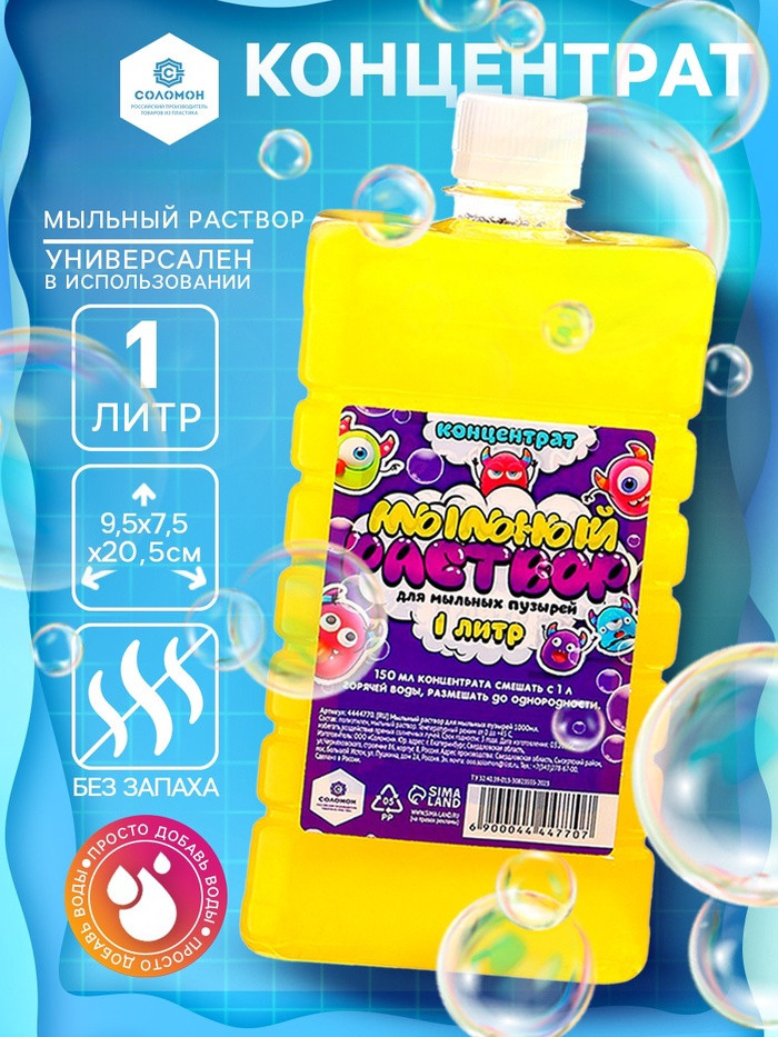💳 Оплатить за товар можно при получении 🇰🇿 Есть бесплатная доставка по Казахстану от 1 дня 🎁 Копите бонусы с каждой покупки Вспомните, сколько радости приносили в детстве пузыри из мыла, эти яркие, сверкающие, переливающиеся всеми возможными цветами шарики, которые витают в воздухе всего несколько секунд. Сегодня эта забава всё так же популярна! Пускать удивительные воздушные пузырьки любят и дети, и взрослые, а заниматься этим можно в любое время года: летом — на улице, зимой — в помещении. Интересный факт — при минусовой температуре мыльный пузырь эффектно замерзает, превращаясь в гладкий ледяной шарик. Меры предосторожности! Избегайте попадания вещества в глаза и в пищу. Следите за маленькими детишками, ведь они любят пробовать всё на вкус. Правила обращения с раствором: выдувать на расстоянии 10 см от лица. При попадании в глаза промыть большим количеством воды. Внимание! Не глотать мыльный раствор. |