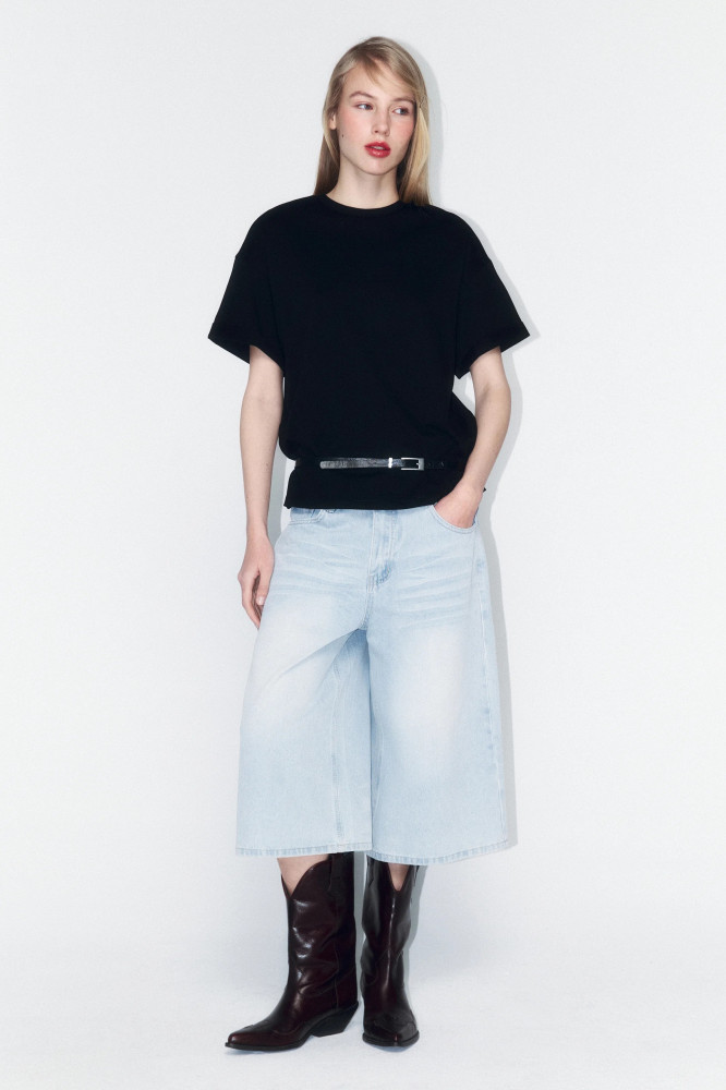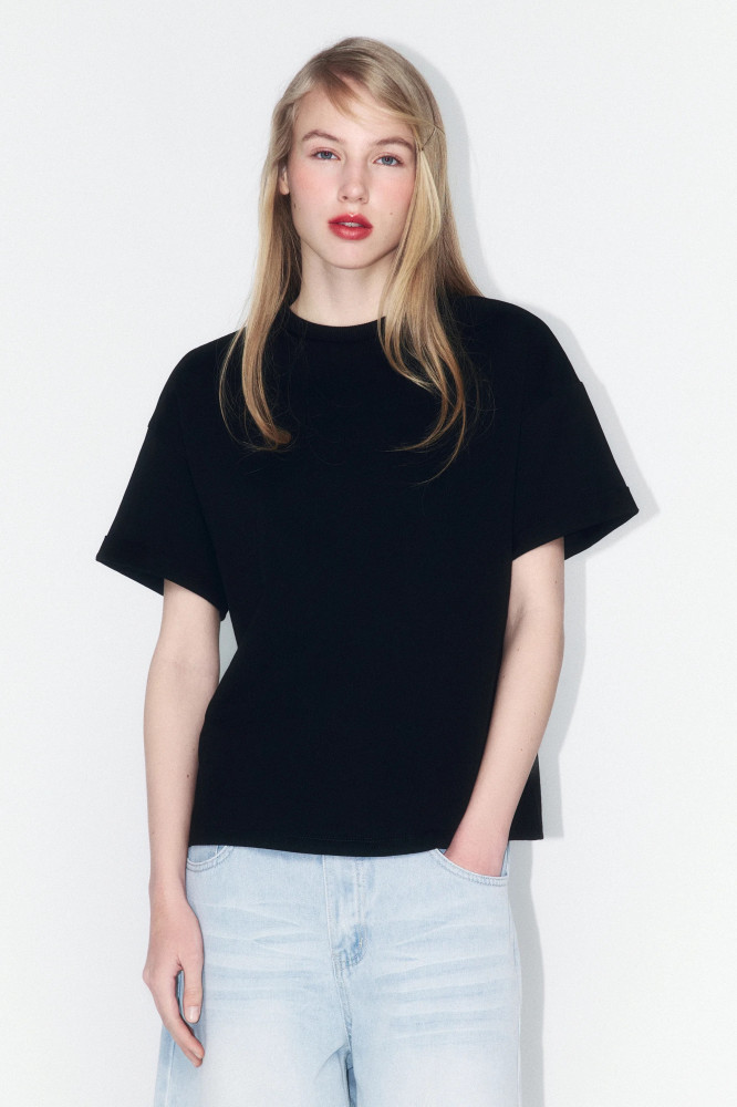 Женская футболка свободного кроя (loose fit) выполнена из дышащей 100% хлопковой ткани высокой плотности с гладкой, приятной на ощупь фактурой. Классический круглый вырез горловины без воротника подчеркивает лаконичный стиль модели. Футболка оснащена короткими рукавами выше локтя с зафиксированными отворотами и спущенной линией плеча, что придает образу расслабленность и современность. Модель представлена в разнообразных однотонных расцветках без принтов, что делает ее универсальной и подходящей для любого настроения и повода. Эта стильная и практичная футболка отлично подойдет как для занятий спортом, фитнесом и бега, так и для домашнего отдыха. Благодаря натуральной, плотной и в то же время дышащей ткани, она обеспечивает комфорт в жаркую и прохладную погоду. Легко сочетается с любым низом и идеально вписывается в повседневные образы для прогулок, отпуска, офиса, школы или просто на каждый день.