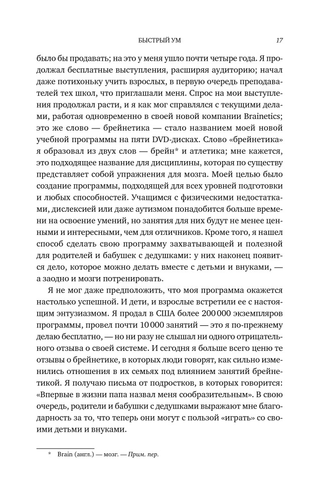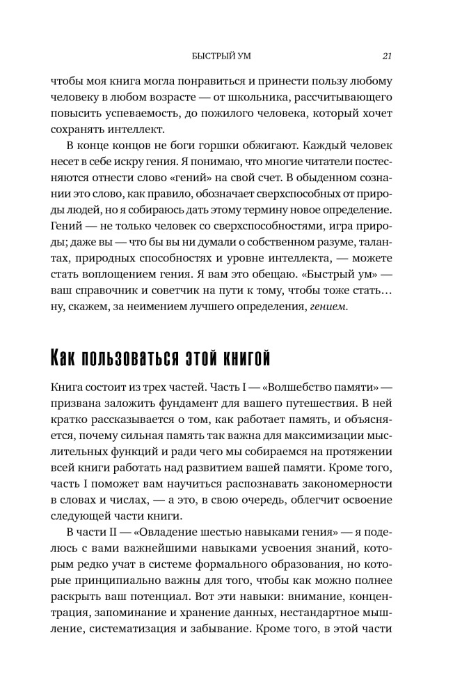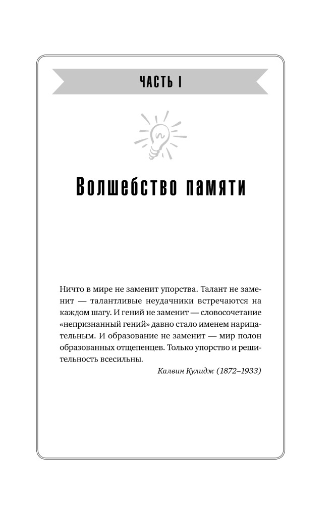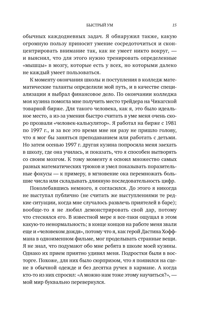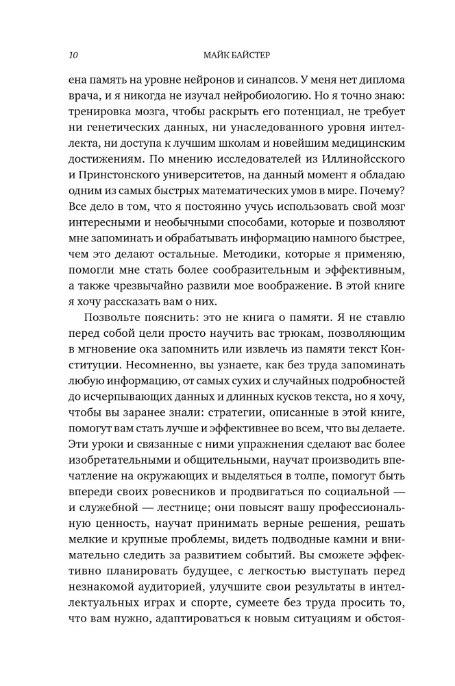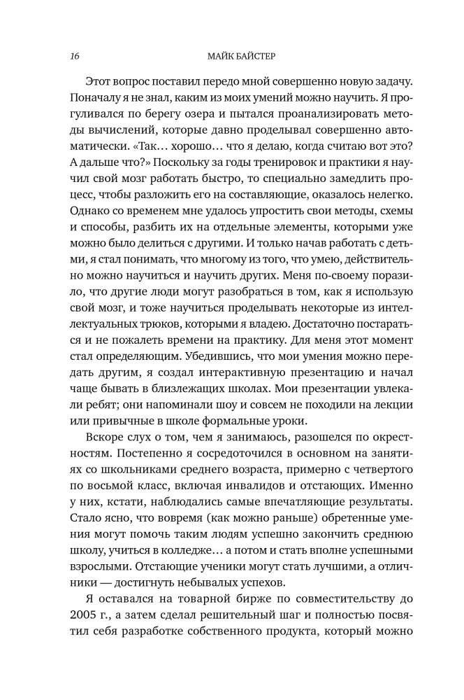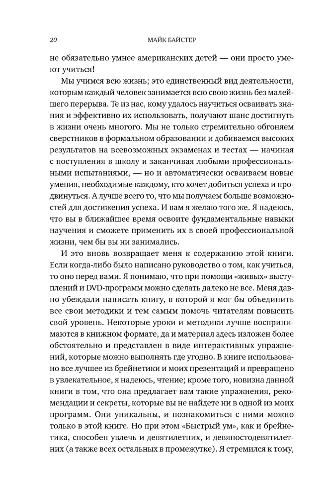 Быстрый ум. Как забывать лишнее и помнить нужноеВ данный момент этот товар отсутствует в продаже. Возможно, у нас найдется аналогичный или похожий товар здесь. Обладатель одного из самых быстрых математических умов в мире и создатель популярной системы работы с памятью убежден: именно талант запоминать и обрабатывать информацию быстрее других открывает пути большого успеха. И этот талант можно развивать. Майк Байстер призывает не бояться чисел и тренировать мозг интересными и необычными способами не ради развития математических способностей как таковых. Овладев материалом этой книги, вы сможете освоить в жизни все что угодно, от иностранных языков до музыки, от кулинарии до умения вести переговоры, общаться и даже налаживать отношения с окружающими. И главное, станете намного увереннее в себе. |