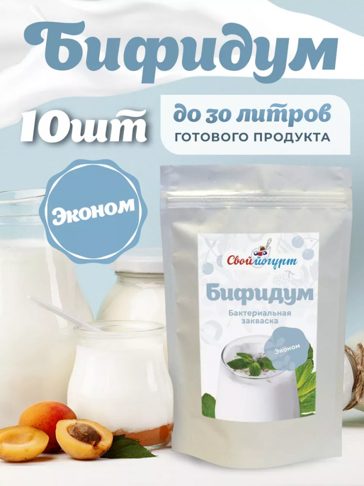 Закваска для бифидума «Свой йогурт» это — здоровье и экономия, Вы получите до 30 литров домашнего бифидума! Домашние продукты на заквасках — это отличный завтрак и перекус для всей семьи. Готовить его легко, в этом поможет подробная инструкция на упаковке. 1 стик может заквасить до 3 литров ультрапастеризованного молока. Именно его нужно использовать! Если вы готовите на домашнем молоке, его нужно прокипятить, чтоб в молоке не было посторонней микрофлоры.