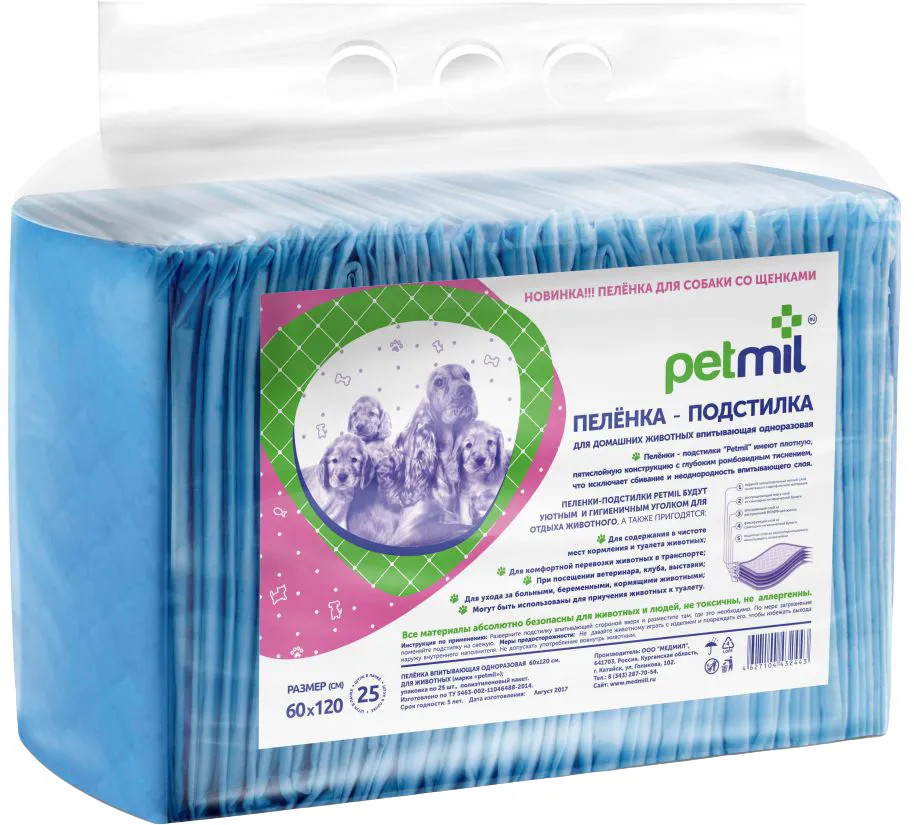 Petmil Пеленки для животных впитывающие одноразовые