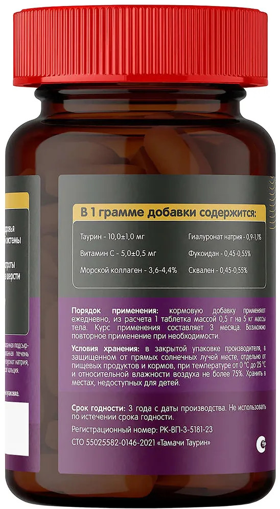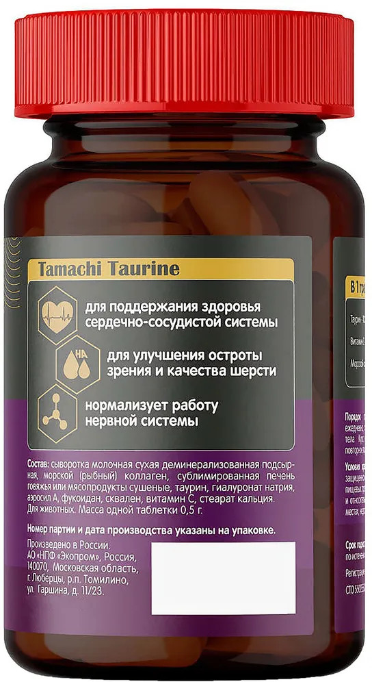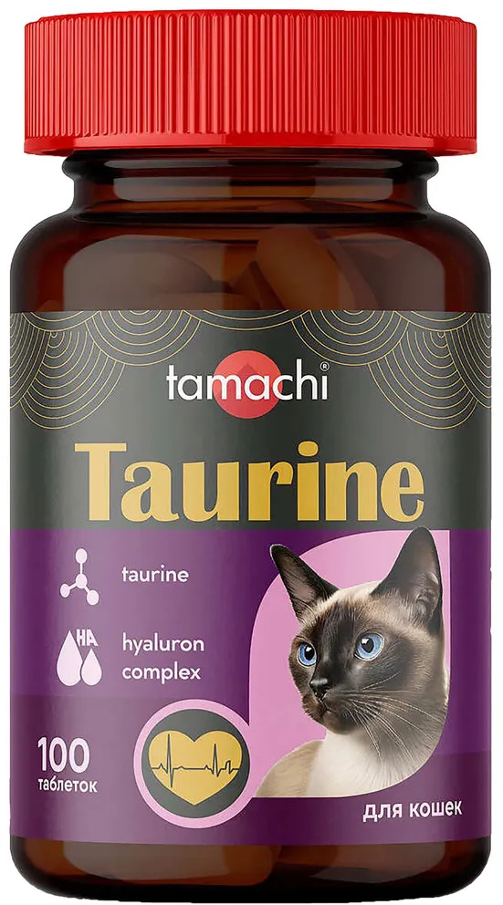 Tamachi Taurin — это витаминный комплекс для поддержания нормальной работы сердца, улучшения остроты зрения и качества шерсти. Уникальная формула с таурином и гиалурон комплексом нормализует работу нервной системы, способствует укреплению сетчатки глаза и поддержанию иммунитета.