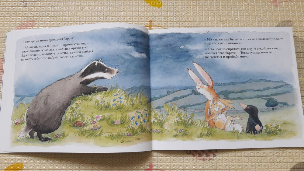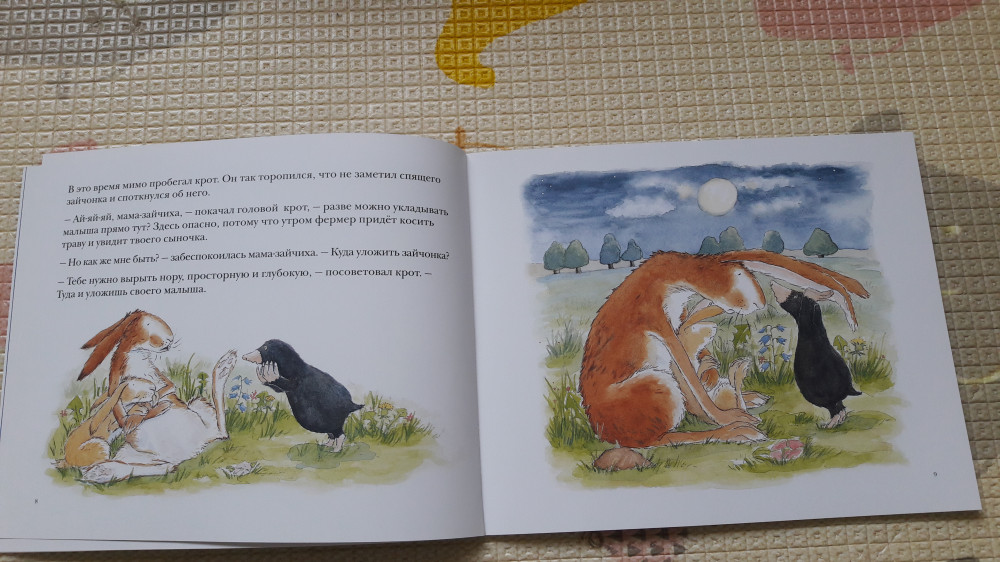 Куда уложить зайчонка? Рассказ в картинкахВ данный момент этот товар отсутствует в продаже. Возможно, у нас найдется аналогичный или похожий товар здесь. Серия: Для самых маленьких Вечером заботливая мама-зайчиха уложила своего зайчонка на травку и присела рядом, чтобы охранять его сон. И всё бы хорошо, вот только пробегавший мимо крот строго сказал зайчихе, что укладывать малыша в чистом поле крайне небезопасно, и посоветовал ей вырыть глубокую нору. |