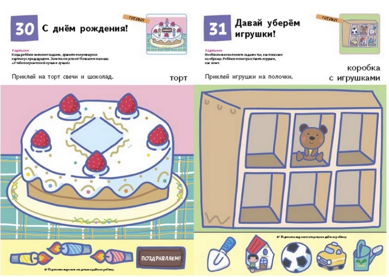 Ребенок в восторге, правда, тяжело временами объяснить, что клеить наклейку нужно именно на эту страницу, а не на другую, и не на мебель в доме.