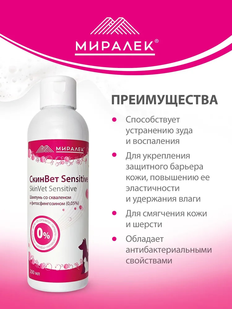 Миралек Шампунь для кошек и собак с фитосфингозином и скваленом «СкинВет Sensitive»-25% +56