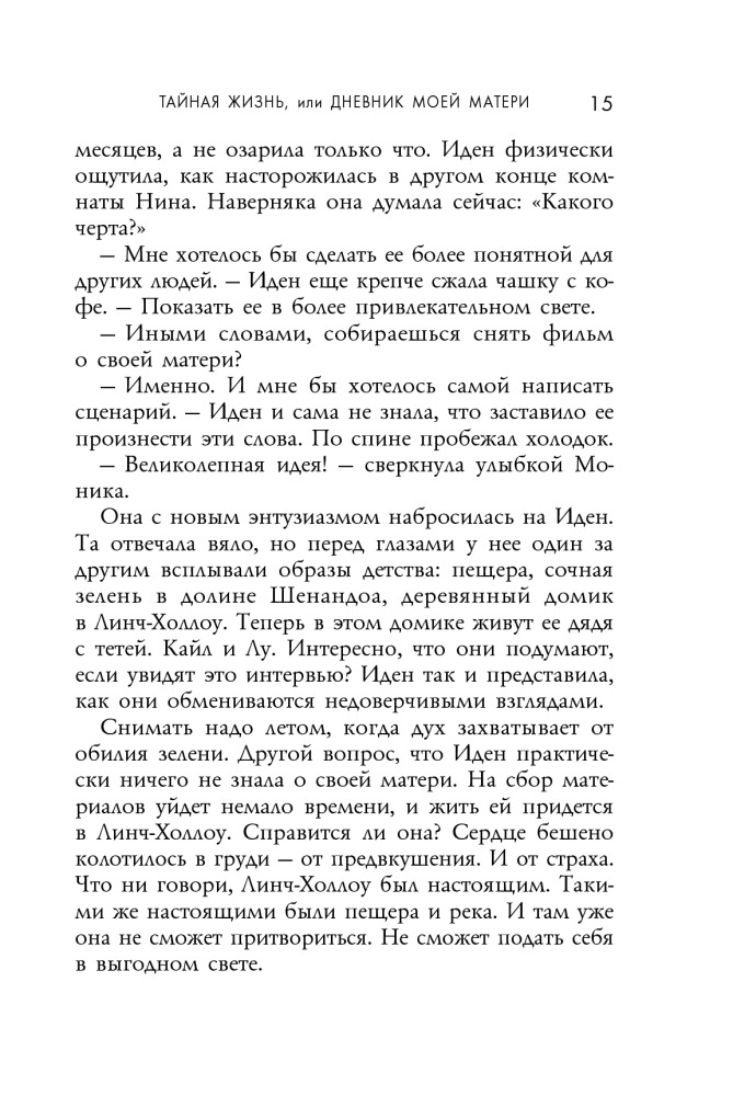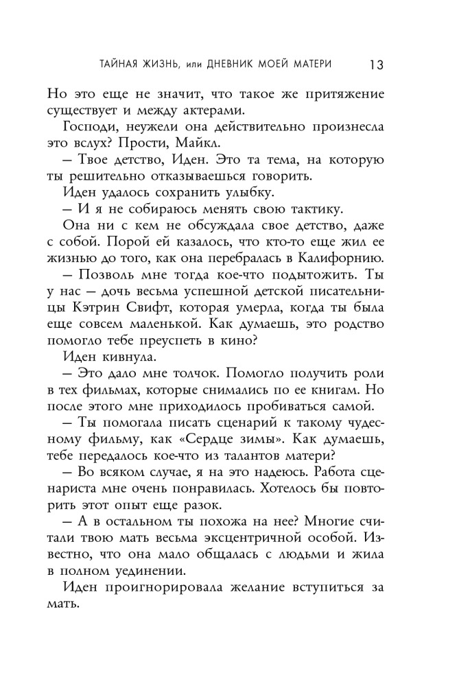 Тайная жизнь, или Дневник моей материВ данный момент этот товар отсутствует в продаже. Возможно, у нас найдется аналогичный или похожий товар здесь. Серия: Роман-потрясение. Д. Чемберлен (обложка) «Я снова влипла в историю. Пишу эти строки, а рука у меня трясется. Меня всегда пугает порка. Не знаю, как далеко зайдет мама на этот раз. На спине и ногах у меня скоро появятся мозоли от ремня» – так начинается дневник, который вела мама Иден с тринадцати лет до своей смерти. |