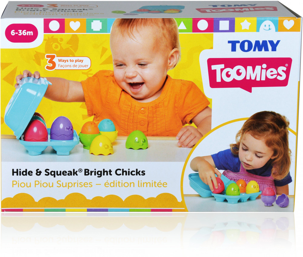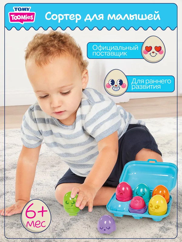 В данный момент этот товар отсутствует в продаже. Возможно, у нас найдется аналогичный или похожий товар здесь. Серия: Toomies Тумис — это мир, в котором обучение становится приключением! Развивающие игрушки Тумис растут вместе с малышом: они безопасные, интерактивные и наполнены сюрпризами! Откройте для малыша увлекательный мир игры с сортером «Веселые цыплята»! Эта яркая развивающая игрушка предназначена для детей от 6 месяцев. Внутри прочного контейнера спрятаны 6 забавных яиц с разными эмоциями, а внутри яиц — разноцветные цыплята. Малыш сможет сортировать яйца по цвету и выражению лица, а также расставлять яйца по соответствующим формам в лотке, развивая логическое мышление и координацию. У каждого яйца есть особая форма в основании: сердечко, треугольник, звездочка, квадрат, круг, крестик. А еще цыплята умеют пищать и греметь!