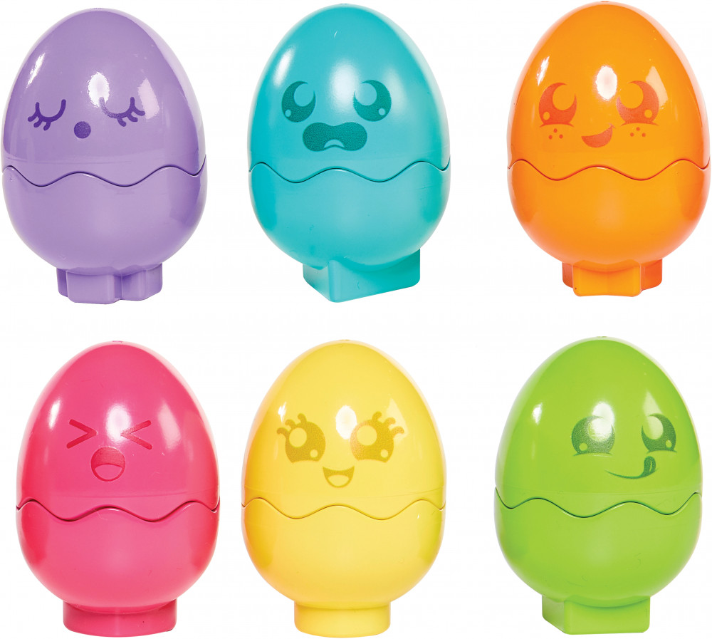 В развивающий игровой набор Тумис Сортер Веселые цыплята входят лоток и 6 разноцветных яиц со съемными скорлупками. Внутри яиц находятся цыплята разных цветов с различными выражениями лица. Снизу у яиц есть основание разных форм (сердечко, треугольник и др.), которое сопоставляется с выемкой в лотке. Высота яиц — 7 см. Игровой набор изготовлен из полимерных материалов. Товар сертифицирован и безопасен для детского использования. Упаковка: закрытая коробка (17×7×12см).