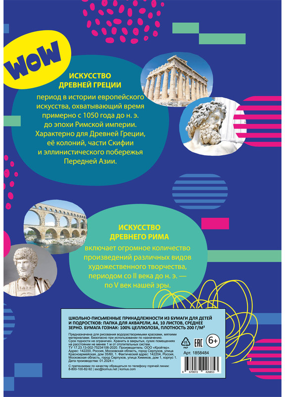 💳 Оплатить за товар можно при получении 🇰🇿 Есть бесплатная доставка по Казахстану от 1 дня 🎁 Копите бонусы с каждой покупки Бумага для акварели «Комус Арт» идеально подходит как для начинающих, так и для опытных художников. Бумага разработана для рисования всеми видами водорастворимых красок. Среднезернистая фактура позволяет работать в различных техниках. Высокая плотность 200 г/кв. м обеспечивает хорошую прочность и способность впитывать воду, что важно для акварельной живописи. |