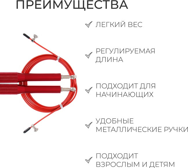 Скоростная скакалка предназначена для выполнения несколько коротких или средних серий прыжков (от 20 до 100 двойных прыжков) в ходе комплексных тренировок. Тренажёр для обучения или совершенствования двойных прыжков по программе кросс-тренинга. Высокая скорость вращения позволяет быстро ускориться во время тренировки.