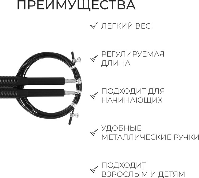 Скоростная скакалка предназначена для выполнения несколько коротких или средних серий прыжков (от 20 до 100 двойных прыжков) в ходе комплексных тренировок. Тренажёр для обучения или совершенствования двойных прыжков по программе кросс-тренинга. Высокая скорость вращения позволяет быстро ускориться во время тренировки.