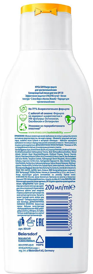 NIVEA Солнцезащитный лосьон для чувствительной кожи «Ультра Защита» SPF30+174