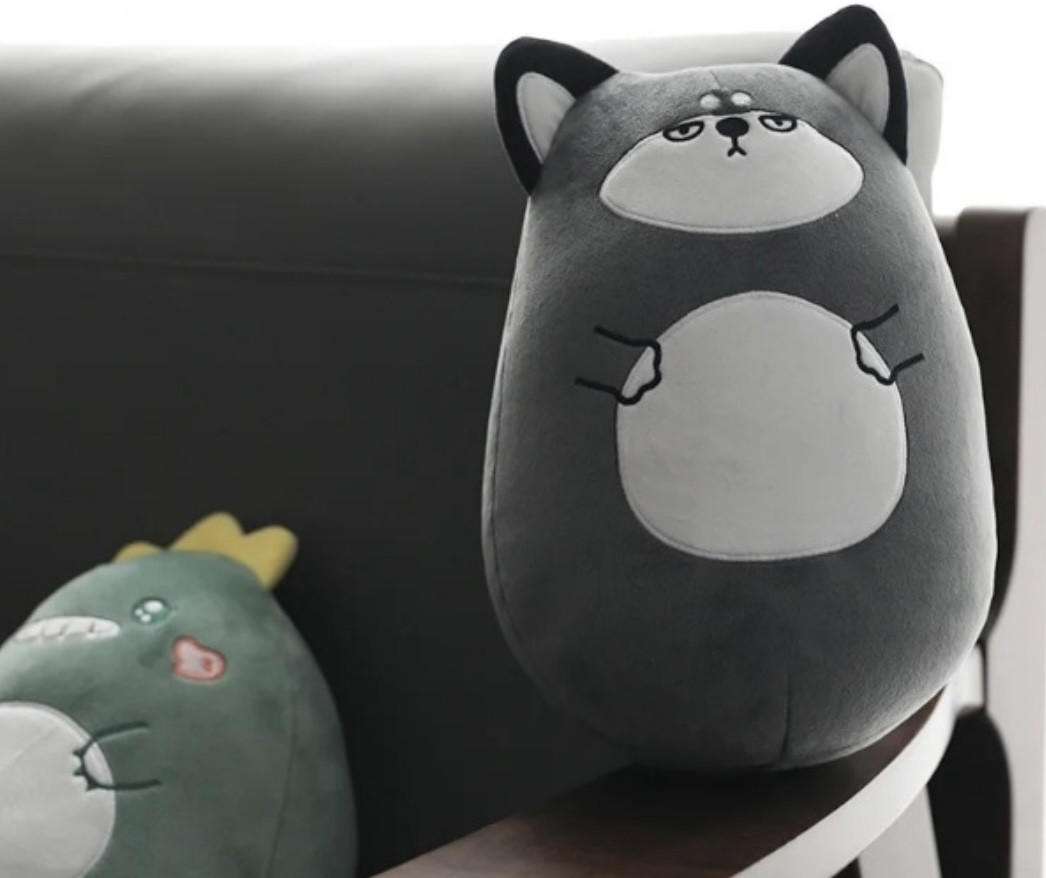 • размеры: игрушка — 25–30 см, подушка — стандартная u-форма для поддержки шеи;