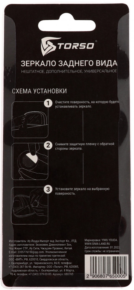 TORSO Комплект зеркал заднего вида дополнительных сферическихВ данный момент этот товар отсутствует в продаже. Возможно, у нас найдется аналогичный или похожий товар здесь. Набор вспомогательных сферических зеркал для зеркал заднего вида. Круглые зеркала диаметром 50 мм имеют самоклеящуюся основу и могут быть наклеены на боковые зеркала заднего вида или другие. |