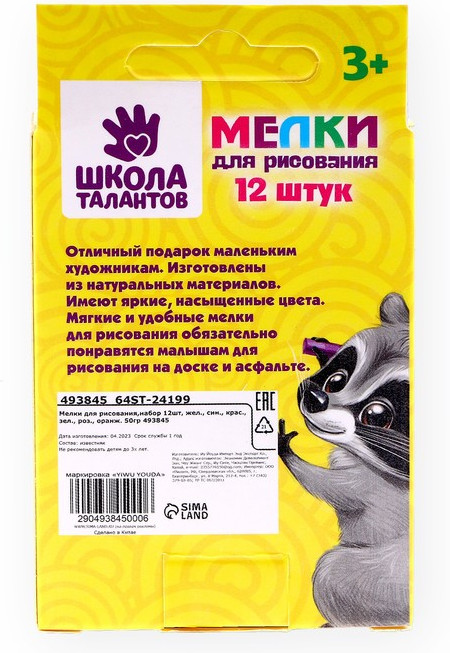 Школа талантов Набор мелков для рисованияВ данный момент этот товар отсутствует в продаже. Возможно, у нас найдется аналогичный или похожий товар здесь. Набор разноцветных мелков для рисования — это идеальный инструмент для воплощения детских фантазий! Яркие, насыщенные цвета вдохновляют малышей на творчество и позволяют создавать настоящие шедевры на асфальте или доске. Мелки удобно держать в руке, они не крошатся, легко смываются с поверхностей и абсолютно безопасны для детей. Прекрасно подойдут как для игр на свежем воздухе, так и для занятий дома или в детском саду. Подарите ребёнку радость самовыражения и яркий мир творчества вместе с нашим набором мелков! |