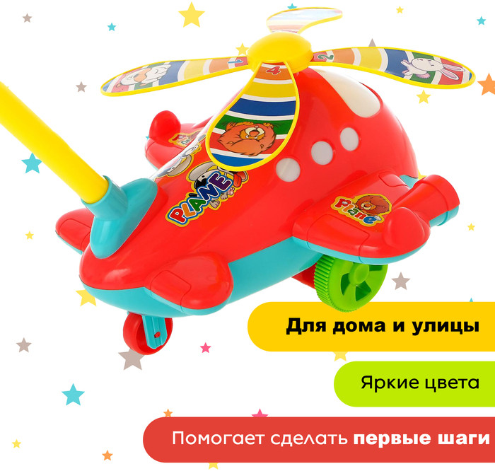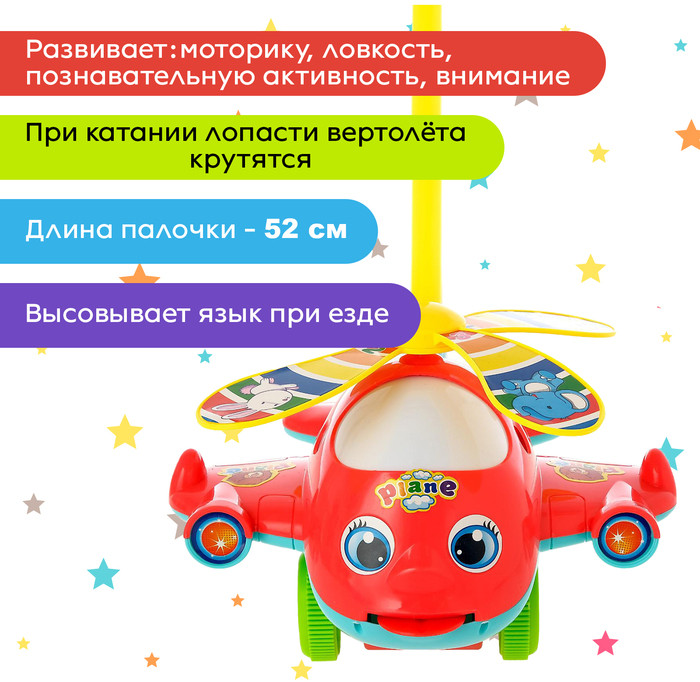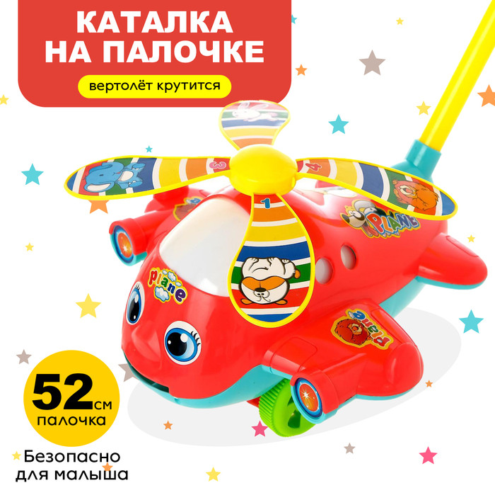 Каталка на палке «Вертолёт»В данный момент этот товар отсутствует в продаже. Возможно, у нас найдется аналогичный или похожий товар здесь. Для каждого возраста подходит своя игрушка-каталка. Если ребёнок уже освоил ходьбу и более-менее уверенно стоит на ножках, то ему подойдёт каталка на палочке. Каталка имеет дополнительные функции: крутятся лопасти и высовывает язык при езде, что больше всего и завораживает ребёнка. Малыш будет с удовольствием катить игрушку впереди себя и наблюдать за её действиями. Каталка на палке «Вертолёт» выполнена из качественных материалов ярких цветов, что привлечёт внимание малыша. Детские каталки развивают координацию движений, внимание, вестибулярный аппарат и тренируют мышцы. Привлекательные и яркие игрушки-каталки для детей будут увлекательным спутником на прогулке, а также станут веселой забавой для игры дома. Длина палки — 52 см. |
