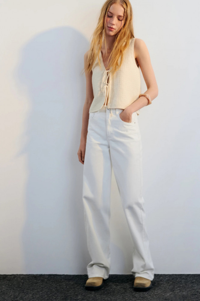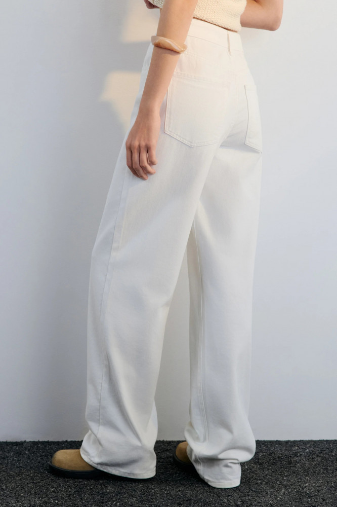 Уже стали базой: самые удобные широкие джинсы-палаццо в освежающем белом цвете для расслабленных повседневных, уличных и офисных луков. Сочетай эти весенние джинсы с высокой талией с любым верхом от повседневного до классического и создавай стильные аутфиты на теплое время года.