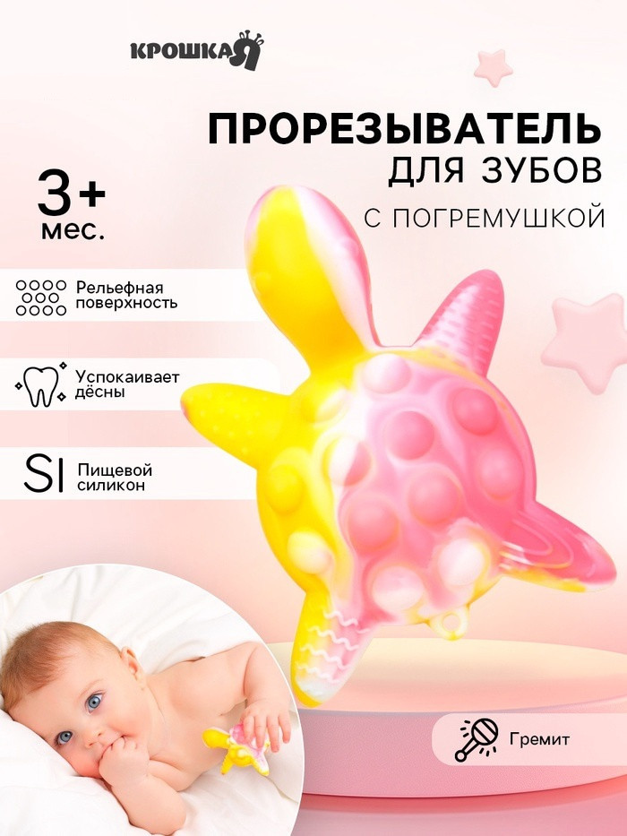 💳 Оплатить за товар можно при получении 🇰🇿 Есть бесплатная доставка по Казахстану от 1 дня 🎁 Копите бонусы с каждой покупки Прорезыватель отвечает потребностям маленьких детей, у которых скоро начнут резаться или режутся зубки. Он является незаменимым помощником при прорезывании зубов. Изготовлен из качественных материалов, помогает в развитии мелкой моторики. Его удобно держать крохотным ручкам малыша. Тактильно приятная поверхность на ощупь. Рельеф обеспечивает сенсорную стимуляцию, а также позволяет нанести успокаивающий гель при прорезывании зубов и распределить его по деснам. |