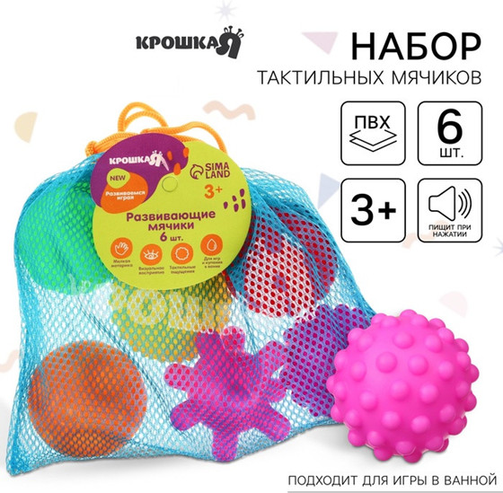 Крошка Я Набор развивающих тактильных мячиков с пищалкой «В мешочке»-25% +40