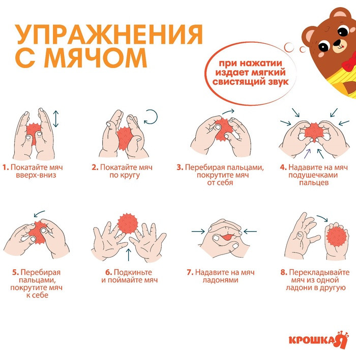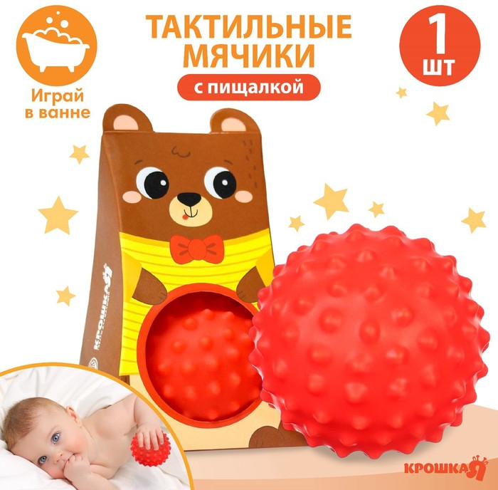 Крошка Я Мячик развивающий тактильный с пищалкой «Мишка»-25% +35